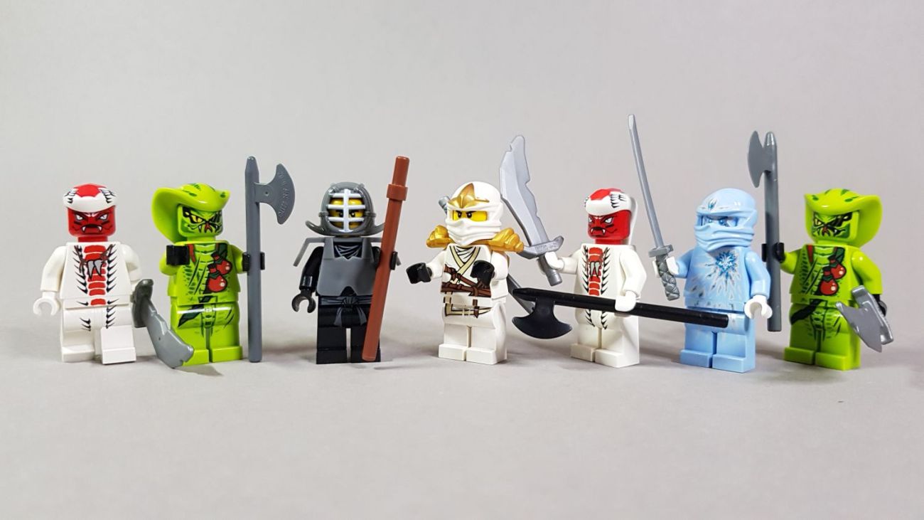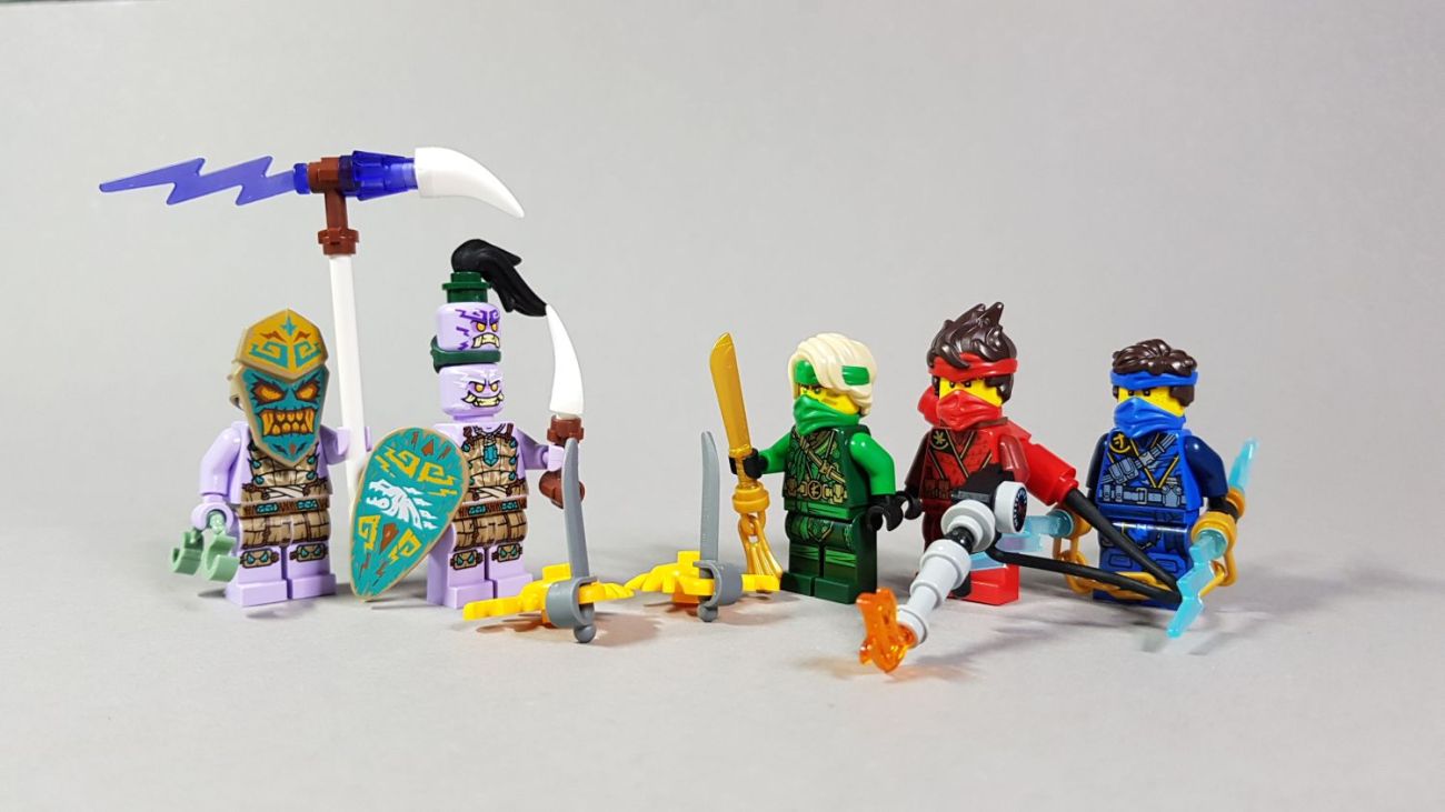 Nachdem die Ninja im großen LEGO Ninjago Kinofilm ein neues Design bekommen haben, ging das Design auch in die Serie über. Die Ninja haben neben den neuen Anzügen jetzt auch neue Frisuren und Gesichter. Von den 8 Figuren sind drei Schurken und fünf Ninja enthalten. Die Schurken gefallen mir hier deutlich besser, da es Sawyer gar nicht in den Sets gab und seine Zusammenstellung die Auswahl an Schurken sogar vergrößert hat.