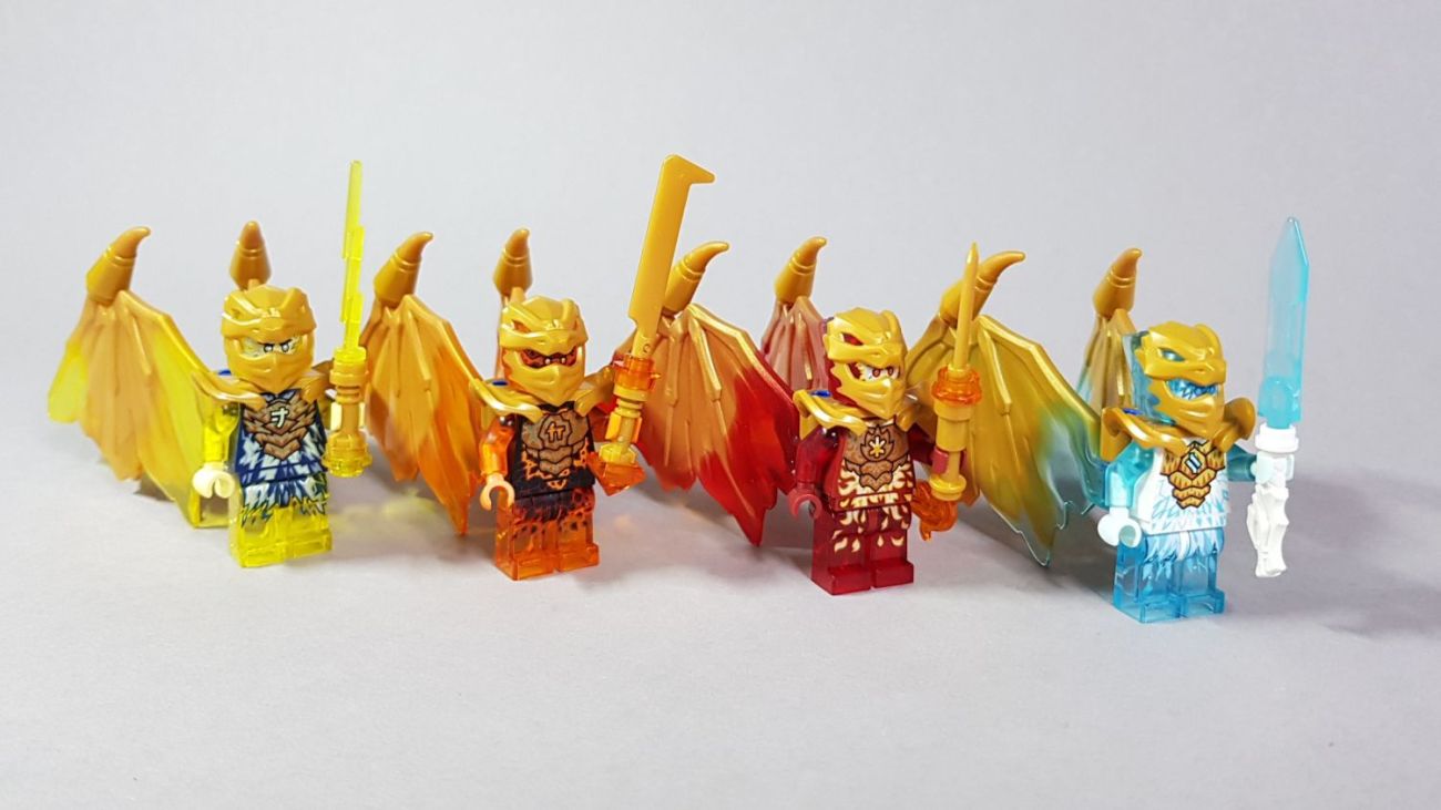 Das Highlight sind ganz klar die vier Golddrachen Ninja Jay, Cole, Kai und Zane. Sie sind vollständig, haben ein paar gute Waffen und es wurden zum Glück auch nicht die Flügel weg gespart. Auch den goldenen Lloyd gab es im Heft, jedoch ohne seine besondere Oni-Maske. Ob die Designer Cole mit seiner goldenen Maske auch beigegeben haben, damit man LLoyd diese Maske für eine akkurate Minifigur aus der Show geben kann, kann ich nicht genau sagen. Es wäre zwar möglich, allerdings hätte man die Maske dann auch direkt Lloyd geben können.