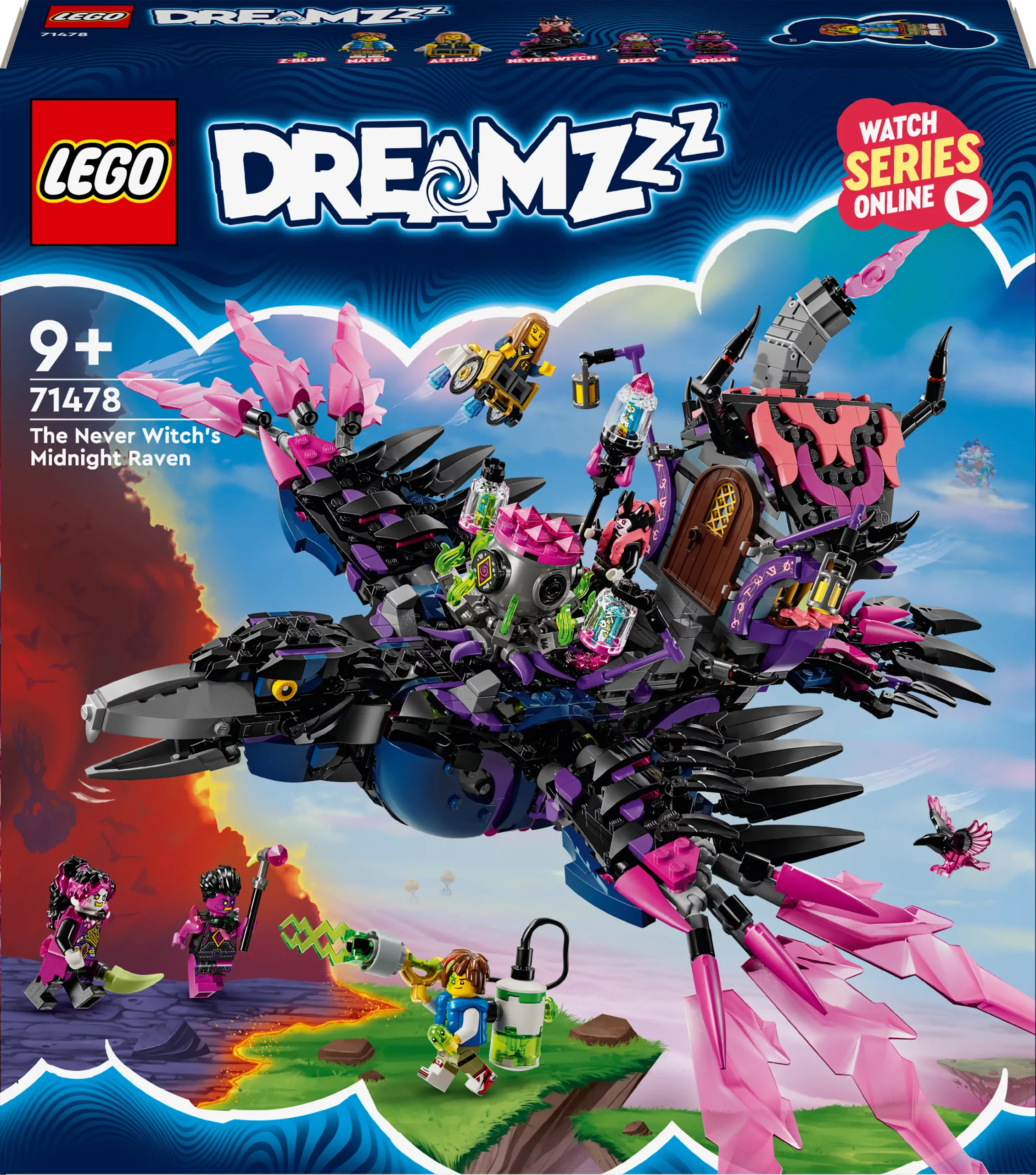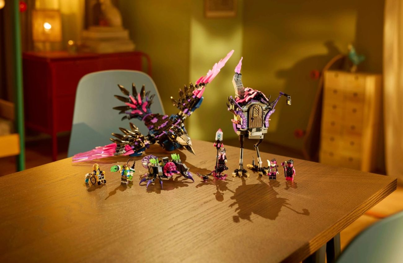 Für 99,99 Euro erhalten wir hier den Mitternachtsraben der Nimmerhexe mit 1203 Teilen. Die Minifigur von Astrid im goldenen Rollstuhl ist hier exklusiv, die anderen Minifiguren tauchen auch in anderen Sets auf. Der Rabe hat auf dem Rücken eine kleine Hütte und einen Hexenkessel, welche man im alternativen Bauwerk entfernen kann, damit sie eigenständig stehen können. Aus dem Kessel wird dann eine Spinne und die Hütte bekommt Füße, angelehnt an das Haus von Baba Jaga.