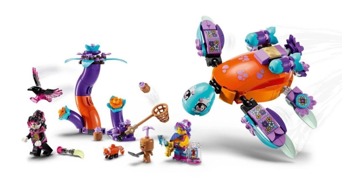 Izzies Traumtiere kommen mit 328 LEGO Teilen inklusive 3 Minifiguren für 39,99 Euro. Izzie steht ihre eigene böse Version gegenüber und wird von einer kleinen, braunen Figur und einem roten Panda begleitet. Diesen wird es auch in den kommenden LEGO City Sets im Sommer geben. Man kann alle Steine für den roten Panda verwenden oder auch alles in eine Schildkröte oder einen Vogel mit Pflanzen und Blumen umbauen.