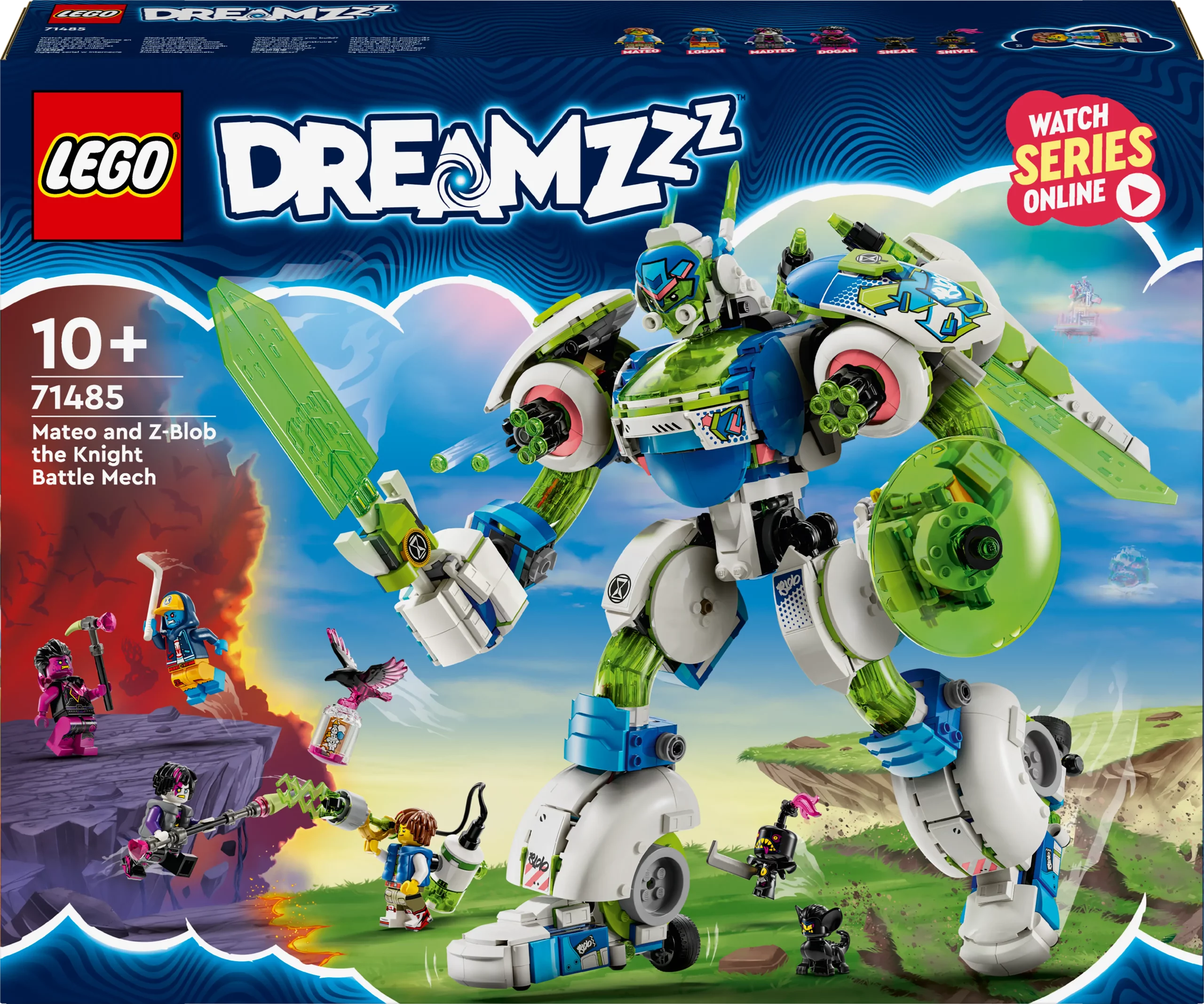 Mateo und Logan sind in dem großen LEGO Dreamzzz Set für 129,99 Euro erhältlich, mit ihren bösen Versionen. Z-Blob bekommt hier einen großen Ritter Mech, welchen man auch in einen Minotauren umbauen kann, oder einen futuristischen Mech.