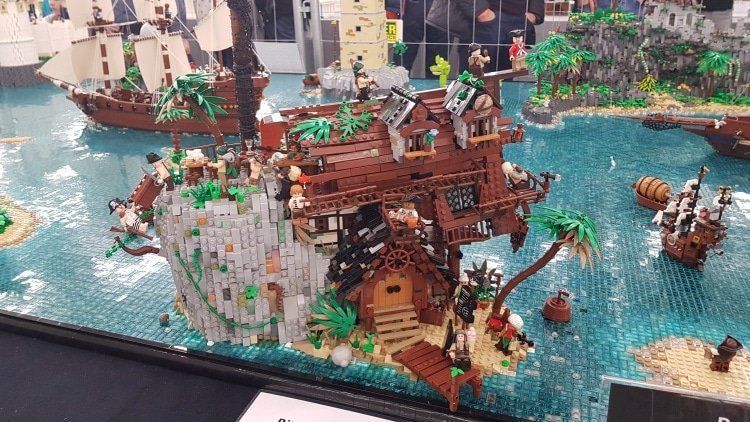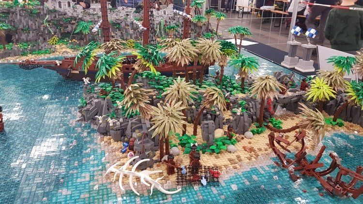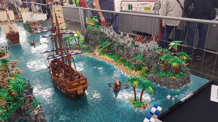 Rogue Bricks war mit einem Piraten Layout vertreten, an dem 18 Mitglieder beteiligt waren. Allein die schiere Menge an trans light blue Teile war enorm. Zwischen 25 und 30 Tausend Stück wurden auf dem gesamten Layout verlegt.