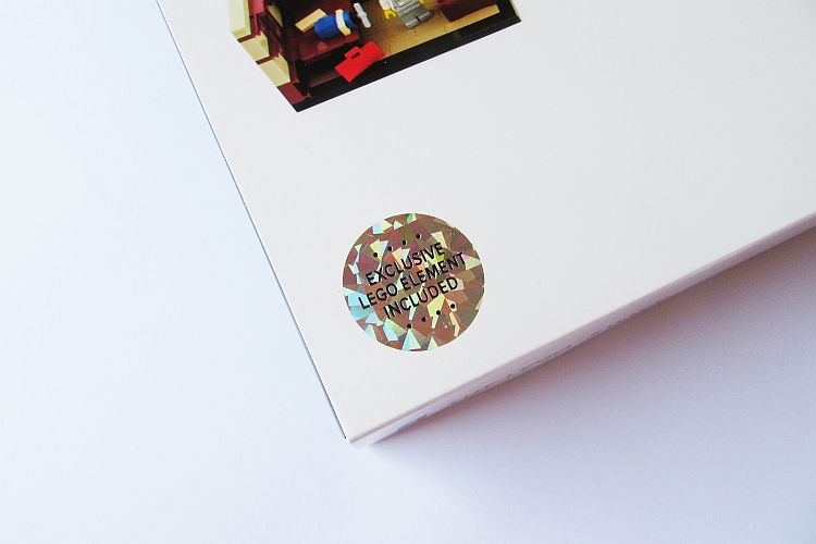Weiter geht es in der linken unteren Ecke mit dem dezenten Hinweis auf ein exklusives LEGO Element, welches in jedem Set enthalten ist. Auch dieses Geheimnis wurde erst mit dem Versenden der ersten Sets enthüllt – ein besonderer 2×4 Stein.