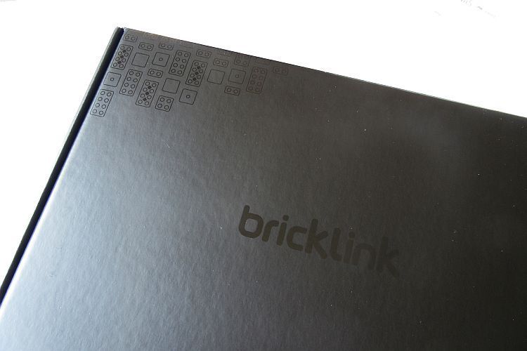Nachdem man das weiße Schutzcover entfernt hat, blickt man auf eine sehr stabile schwarze Box, welche mit UV-Lack verschönert wurde. Je nachdem, wie man das Licht darauf fallen lässt, glänzen ein dickes bricklink-Logo und diverse Klemmbausteine dem begeisterten Betrachter entgegen.