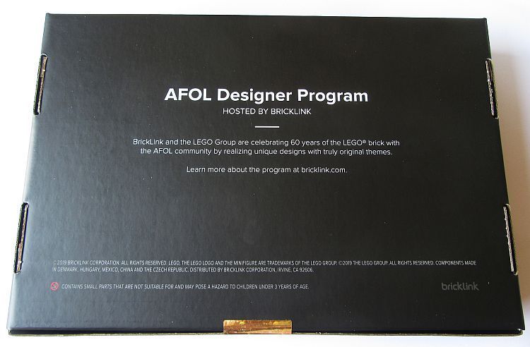 Die Rückseite ist ebenso bedruckt. Einerseits mit dem Hinweis auf das Projekt, anderseits mit dem typischen Copyright-Schriftzug, der auch stets die LEGO Sets ziert.