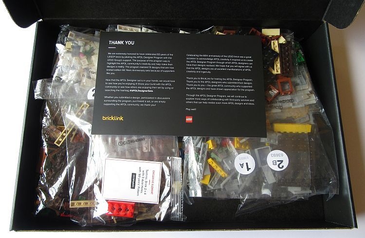 … und wie von Zauberhand öffnet sich die Box und die heiß ersehnten Plastiksteinchen kommen zum Vorschein. Eine kleine Dankeskarte, dass man das Crowdfunding erfolgreich unterstützt hat, liegt dem Set ebenso bei.