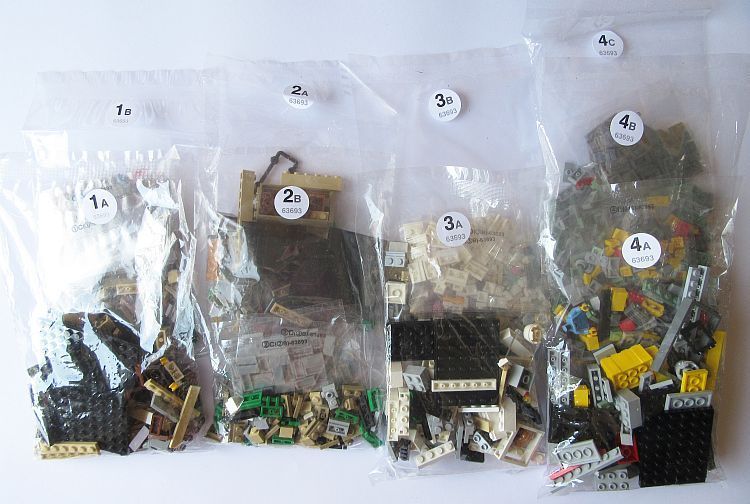 Insgesamt neun größere Tüten, wovon einige nochmal kleinere Tüten beinhalten, kommen zum Vorschein. Sie sind recht dünn und knistern auch nicht so extrem wie bei LEGO. Aber ähnlich wie beim Vorbild aus Billund sind diese ebenso durchnummeriert. Zum Bauen wird immer eine komplette Tütengruppe benötigt. Ich startete anfangs nur mit dem Öffnen der 1A – merkte aber schnell, dass ich die Teile aus 1B auch benötige.
