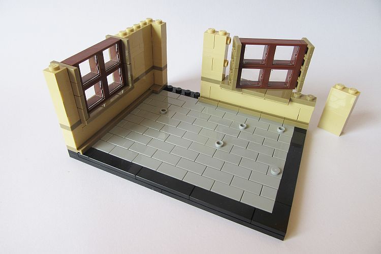 Im zweiten Bauabschnitt wird eine Zeitreise in die 50er Jahre gemacht mit der ersten Spritzgussmaschine. Auch hier wird zuerst wieder die Grundplatte ordentlich befliest und anschließend die Wände hochgezogen. Die Fenster wurden in diesem Modell dafür gekippt um etwas Abwechslung in den Grundaufbau zu bringen.