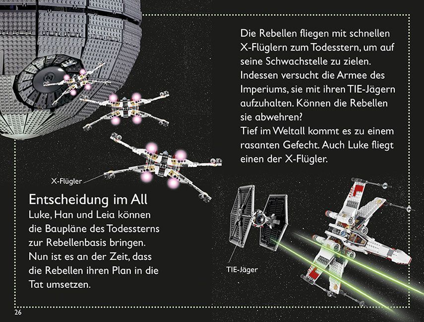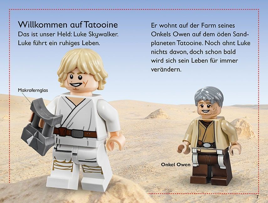 Aufgrund der rund 130 Abbildungen von LEGO® Star Wars™ Minifiguren, Raumschiffen und verschiedenen Film-/Spielsituationen war das gebundene Buch auch für meinen Jüngsten (3 Jahre) von Interesse. Kennt er sich doch dank seines älteren Bruders (und mir) schon erschreckend gut im Star Wars™ Universum aus. Ich durfte ihm das Buch an drei Abenden vorlesen und dabei eine Unmenge von Fragen beantworten. Zum Beispiel warum das jetzt so geschieht oder wer von den beiden Figuren jetzt nun der Böse ist. Unterhaltsame Leseabende waren das …