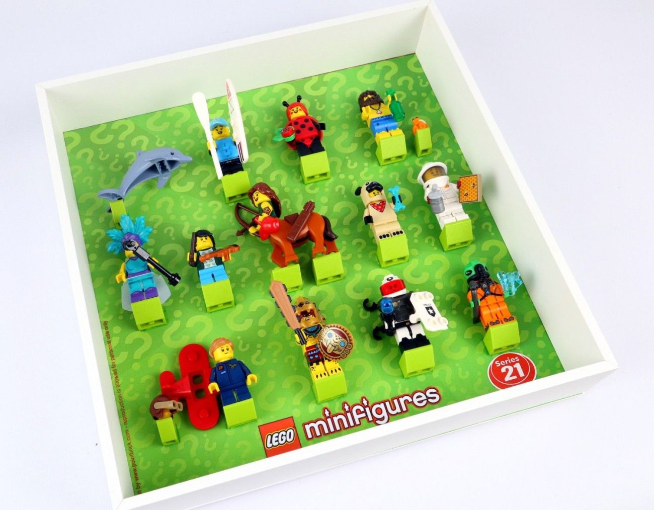 Ich habe bishar auch die Ribba-Rahmen verwendet. Eine 32×32 Baseplate auch die Rahmengröße zugeschnitten als Rückseite und dann die schwarzen Platten hochkant zwischen Noppenreihen als Halterung für die Minifiguren eingesetzt. Die „Noppenwand“ bietet somit zusätzlichen Stauraum für die diversen Utensilien der Minifiguren…