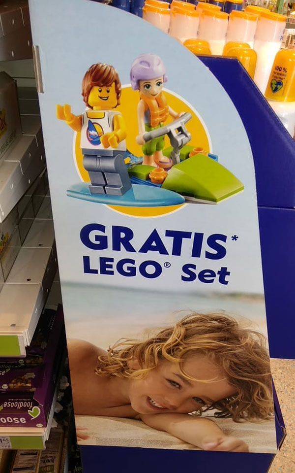 In den Filialen der Drogeriemarktkette DM gibt es aktuell eine LEGO Promotion-Aktion in Kooperation mit NIVEA Sun. Beim Kauf von zwei Produkten der Firma erhalten Kunden ein LEGO Polybag gratis dazu. Zur Auswahl stehen LEGO 30369 City Strandbuggy und LEGO 30410 Friends Mias Schildkröten-Rettung. Beide Polybags gibt es bei Müller beispielsweise für je 3,99 Euro im Einzelverkauf.