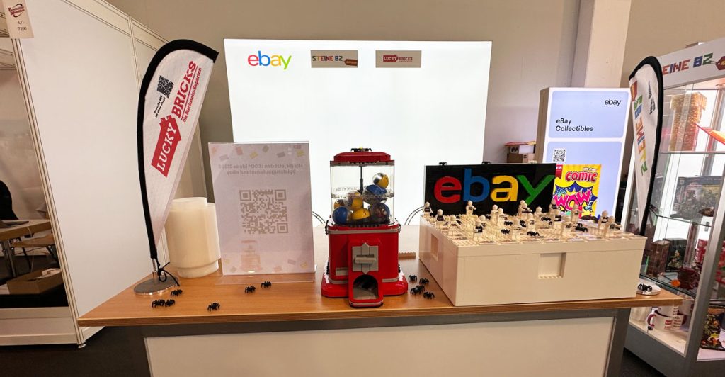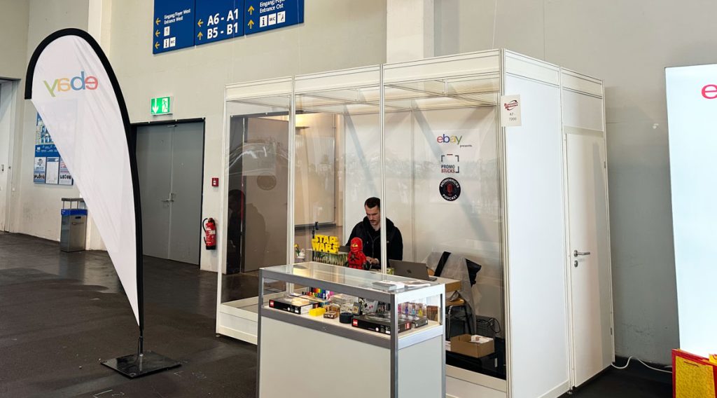 PROMOBRICKS ist zusammen mit zwei eBay-Partner-Shops auf dem Messe-Stand von eBay Deutschland in Halle A7 vertreten. Das Titelbild oben ist zwar nur ein grobes Rendering, es vermittelt aber schon einen guten Eindruck auf das, was euch bei eurem Standbesuch erwartet. Los geht es mit einem großen, aus LEGO Steinen gebauten eBay-Logo von LEGO Masters Teilnehmer Adrian Kniewald aka Brickerie. Am Stand steht euch ein eBay Experten-Team zum Kaufen und Verkaufen von LEGO auf der beliebten Plattform mit Tipps und Infos zur Verfügung.