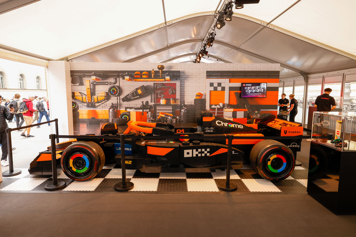 Am LEGO Stand erwarten euch jede Menge Aktionen wie der Bau des eigenen Traumrennwagens aus LEGO Elementen, Reaktionsspiele zur Verbesserung der Fahrfähigkeiten, Rennen mit selbstgebauten Autos, virtuelle Fahrten an hochmodernen Simulatoren und ein originalgetreues 1:1 LEGO Modell des McLaren F1 Rennwagens, das bereits in Miami präsentiert und über die Rennstrecke gefahren ist.