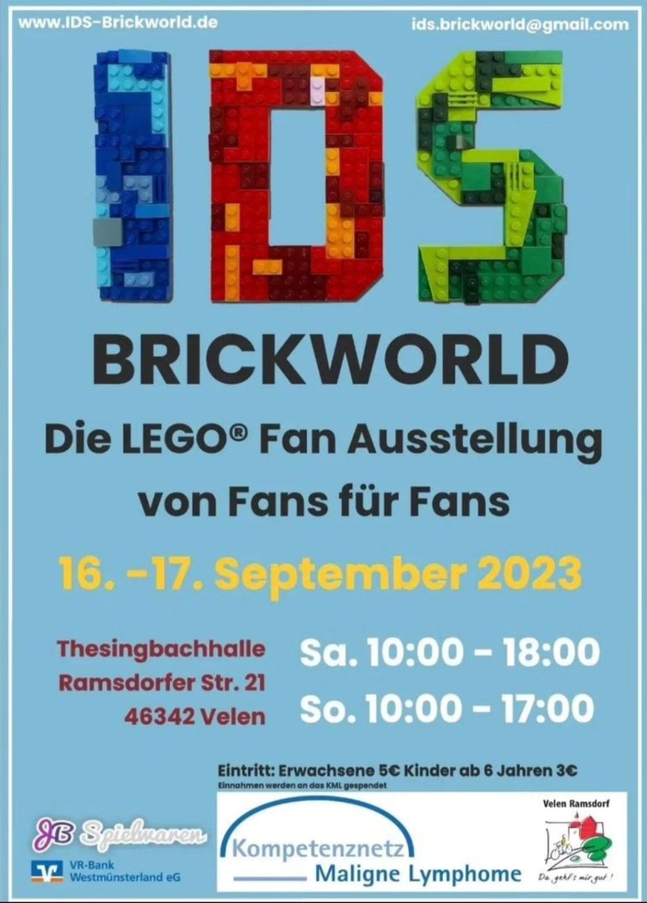 Nach der Bricks and Friends in Köln im August gibt es an diesem Wochenende eine weitere LEGO Ausstellung in Nordrhein-Westfalen. Die IDS Brickworld findet am kommenden Samstag, den 16. und Sonntag, den 17. September 2023 in Velen statt. Schon bei der ersten IDS Brickworld 2021 gab es über 4000 Besucher und 39 Aussteller auf 1400qm Ausstellungsfläche. Dieses Jahr gibt es sogar 70 Aussteller, einige Star Wars Cosplayer und natürlich viele interessante MOCs mit coolen Storys und spannenden Bautechniken. So soll es zum Beispiel auch eine 3×4 Meter große Piratenlandschaft geben.