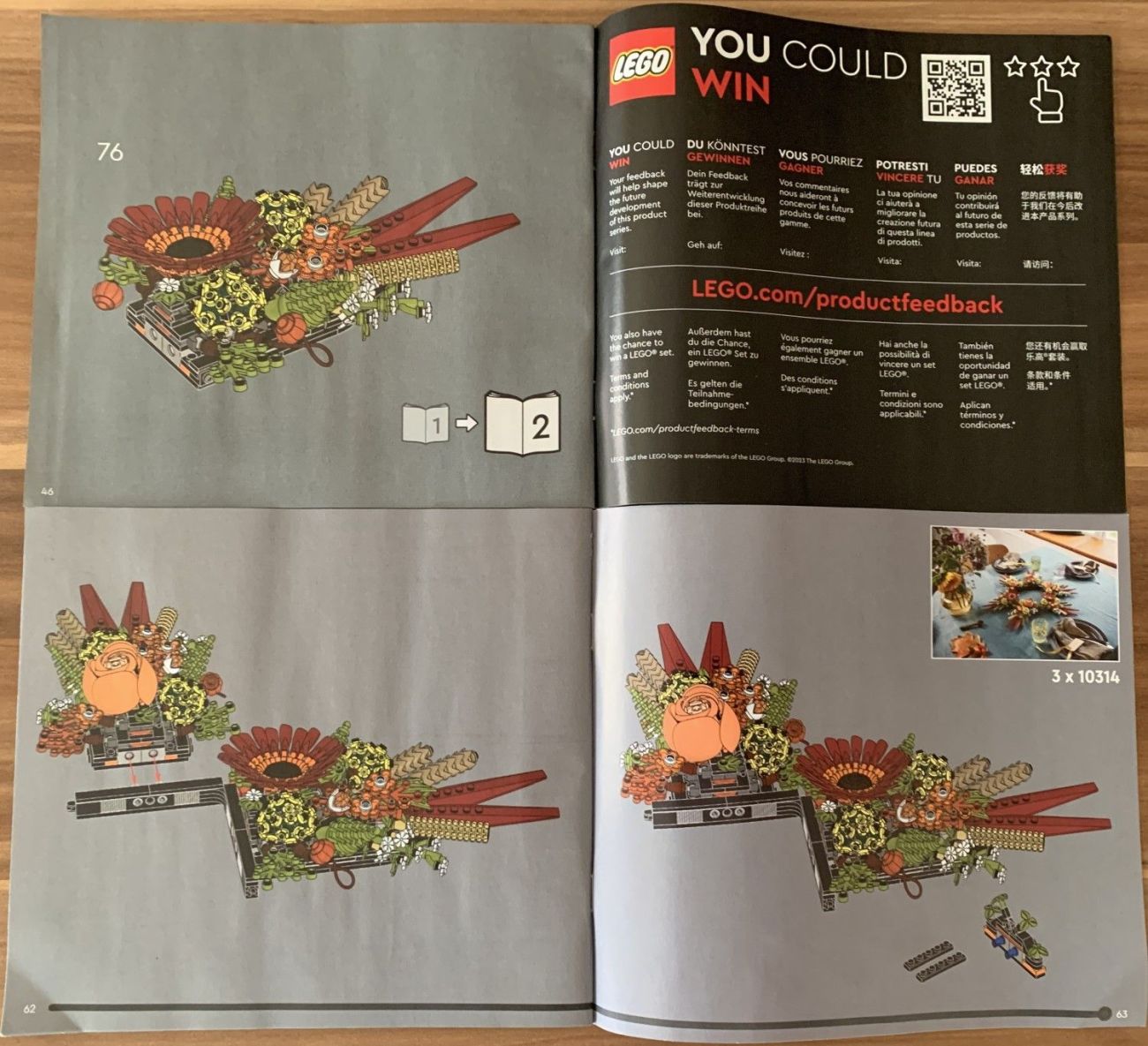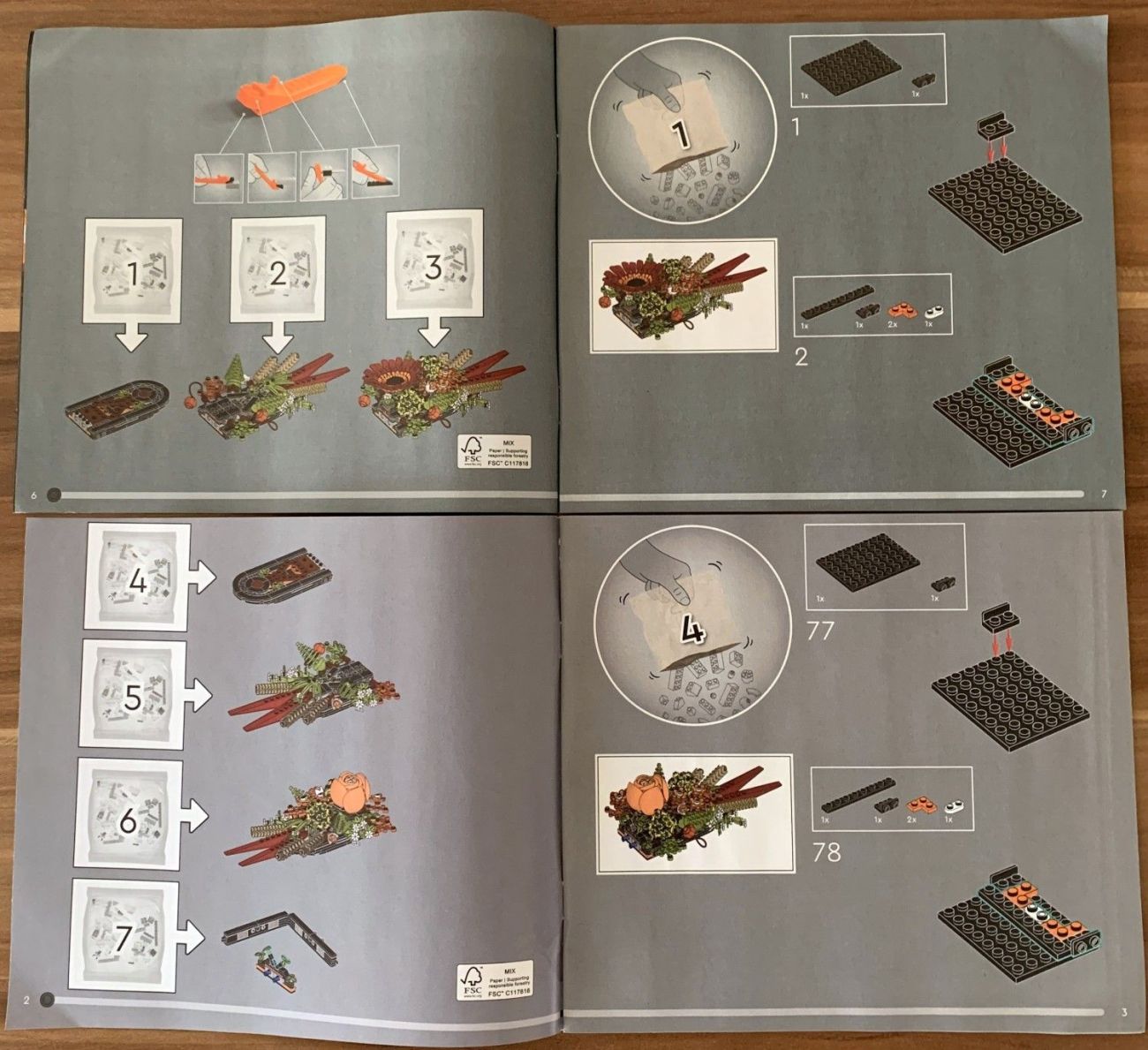 Wie bereits erwähnt, bietet das LEGO 10314 Trockenblumengesteck die Möglichkeit, gleichzeitig von zwei Personen erbaut zu werden. Dafür gibt es auch direkt zwei Bauanleitungen. Der Aufbau der beiden Gesteck-Module ähnelt sich jedoch sehr und somit ist wohl ein gemütlicher Abend zu Zweit von Vorteil, um sich die Wiederholungen zu ersparen.