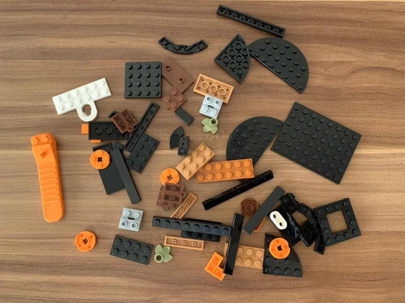 Bereits beim Anblick der sieben Tüten des LEGO 10314 Trockenblumengestecks fällt einem die besondere Farbgebung des Sets ins Auge. Hier wird man also keine knallig bunten Blüten erwarten können. Stattdessen geht es etwas gediegener zu, wobei die Kombination aus den verschiedenen Grüntönen bis hin zu Braun und Orange doch im Endeffekt sehr ansprechend ist.