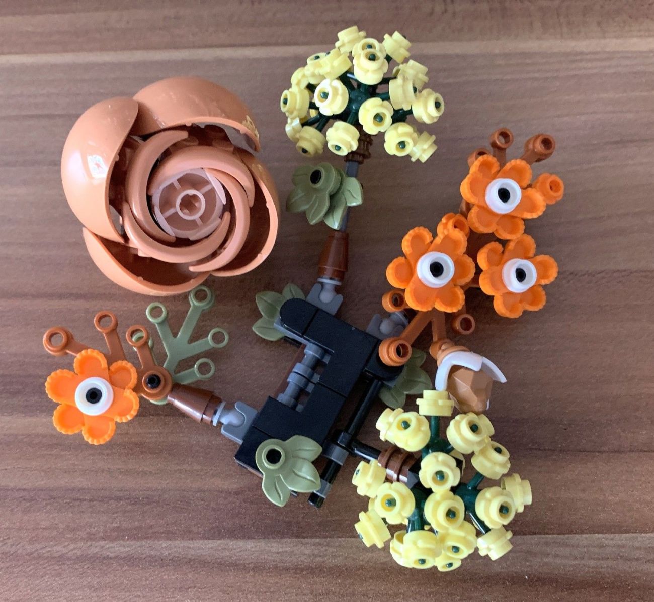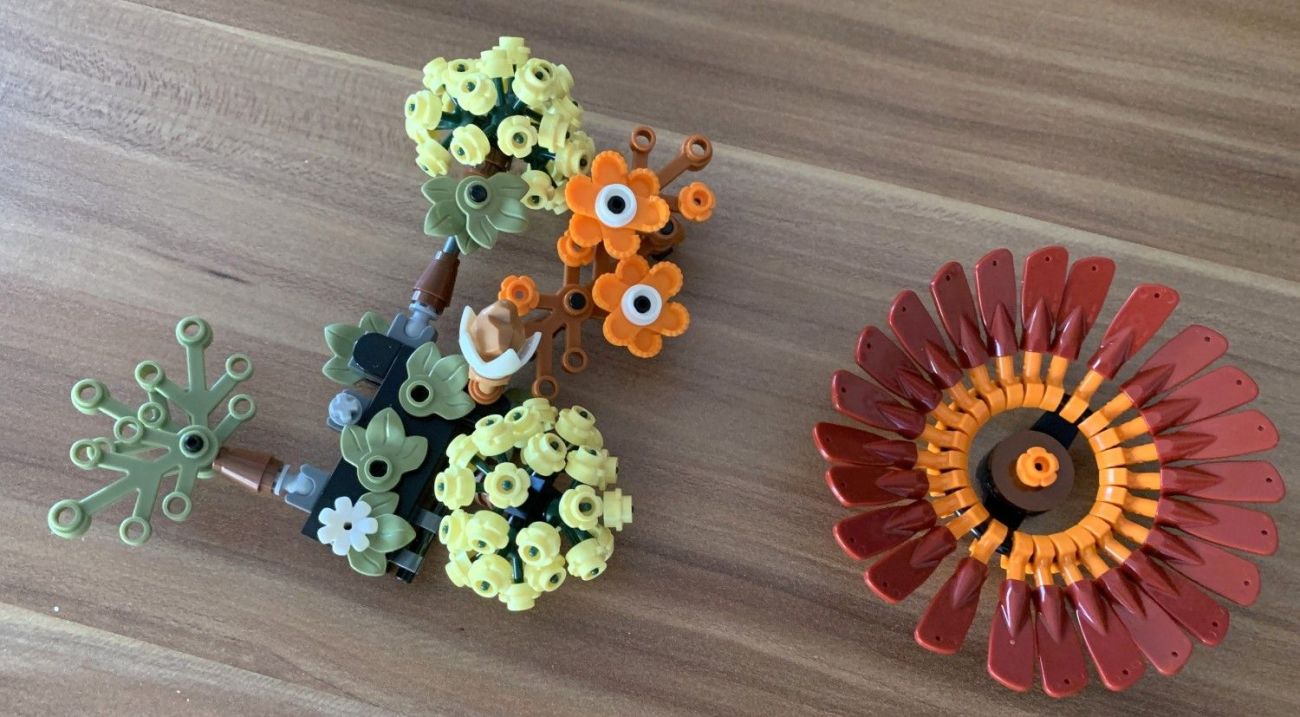 Weiterfolgend gibt es auch bekannte Blumen zu erbauen, auch wenn die Bauschritte nicht hundertprozentig den bisherigen entsprechen. Ich persönlich bin froh, das LEGO 10314 Trockenblumengesteck nicht dreimal aufbauen zu müssen, weil wiederholende Bauschritte mich doch sehr langweilen.