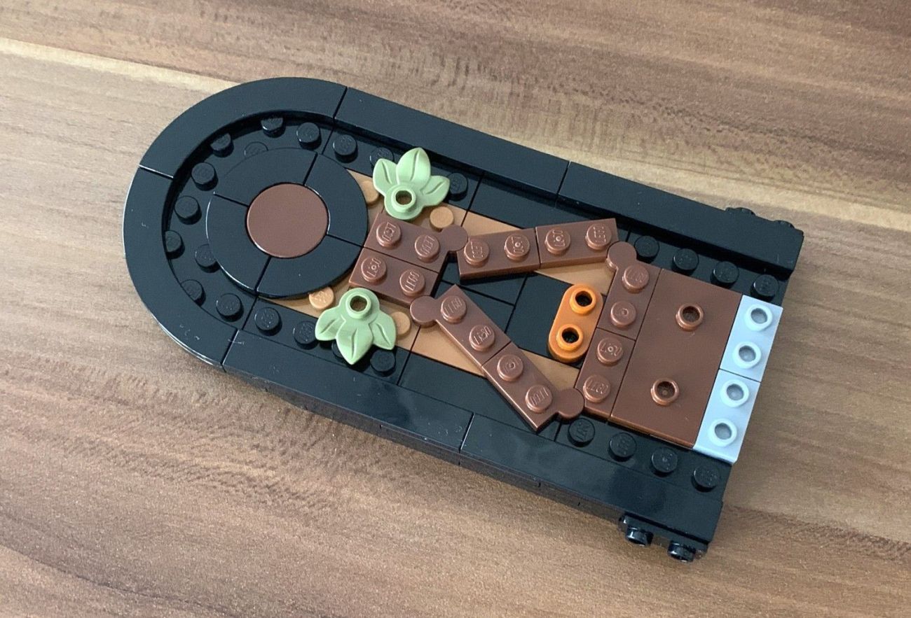 Mit der ersten Tüte wird die erste Basisplatte für das LEGO 10314 Trockenblumengesteck zusammengebaut. Damit man am Ende die getrockneten Blumen vielleicht auch an die Wand hängen kann, wird hier auch gleich die entsprechende Wandhalterung mit verbaut.