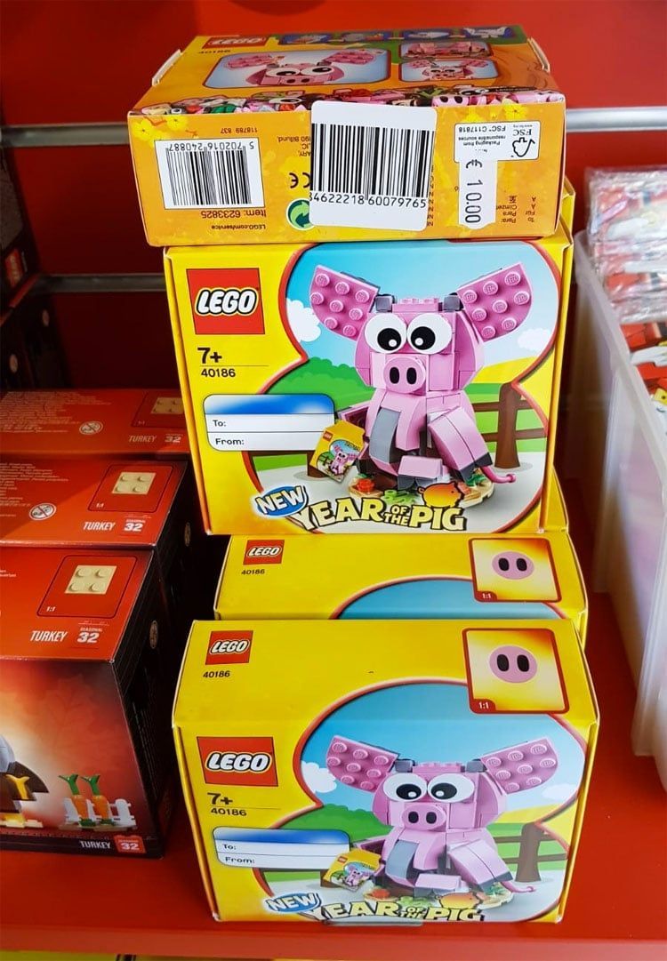 Verkauft wird das Set dort übrigens für zehn Euro, wie auf dem Preisschild zu sehen ist. Wann und ob das rosa Schweinchen auch in den Brand Stores oder im LEGO Online-Shop zu haben sein wird, ist mir derzeit leider nicht bekannt.