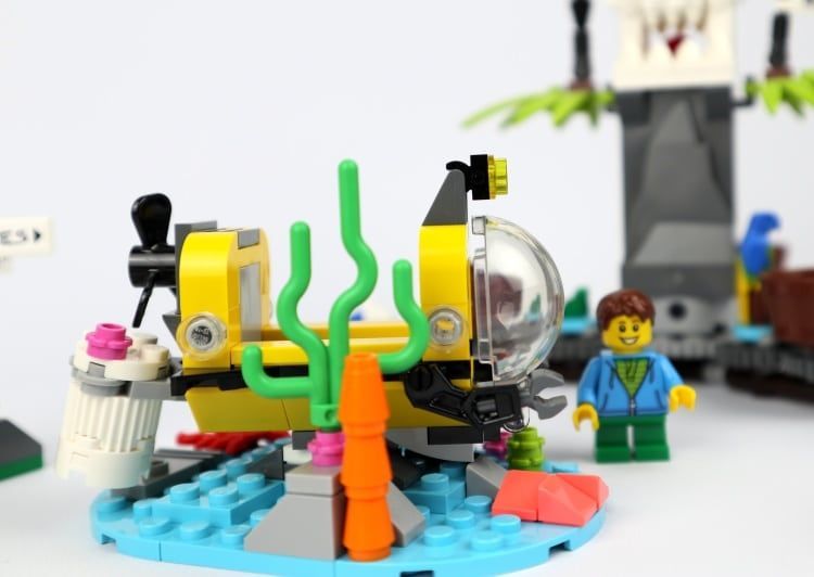 Mit den Tüten der Nummern vier, fünf und sechs wird neben einer Foto-Station, eines Imbiss-Wagens, einer LEGOLAND-Karte inklusive Wegweiser auch ein gelbes U-Boot zusammengesteckt. Auf welche Attraktion dieses U-Boot im echten LEGOLAND hinweist, sollte jedem bekannt sein – SeaLife.