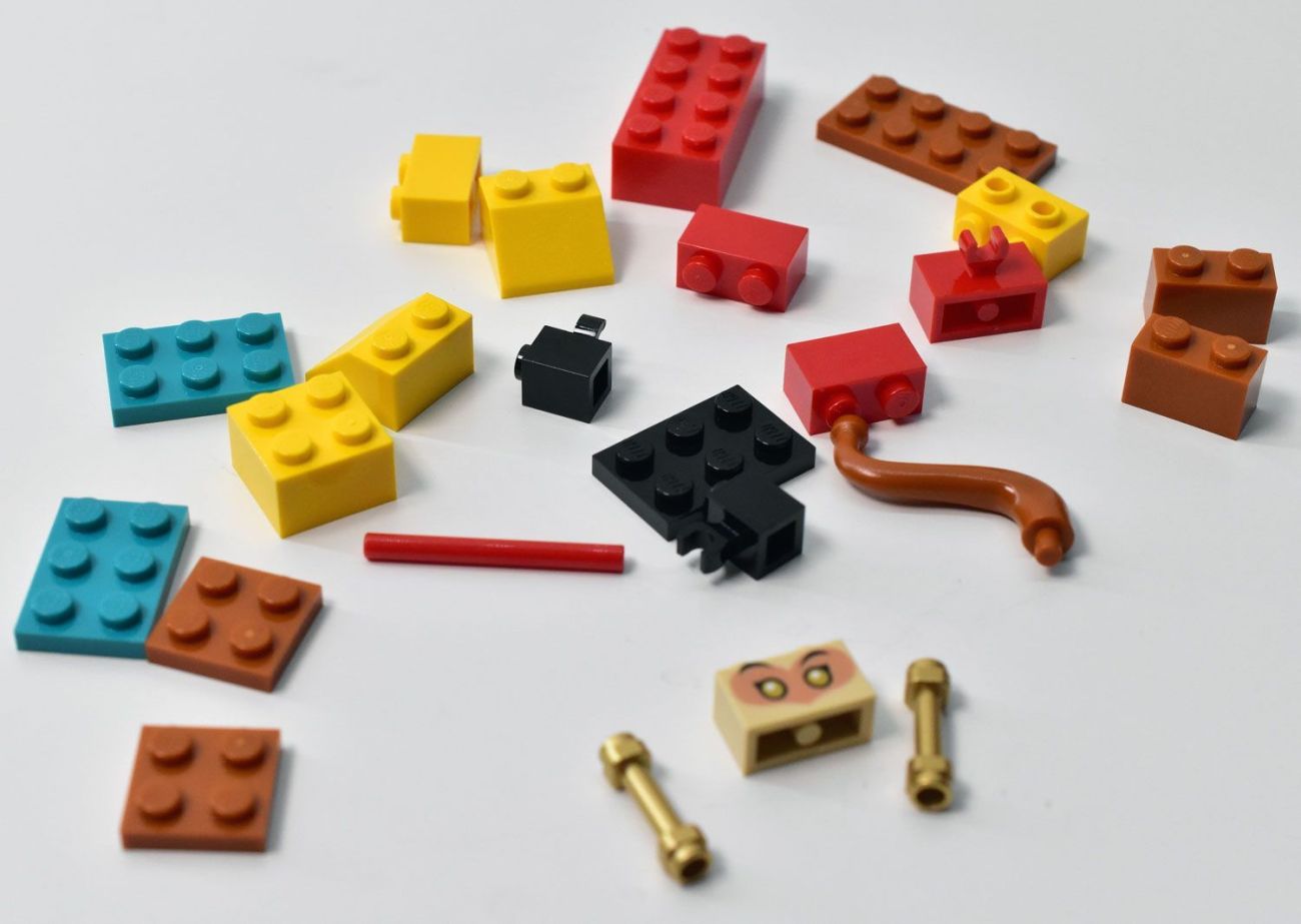 Im Beutel befinden sich 24 Teile, wobei das Highlight die beiden goldenen Endstücke vom Stab (Handle, 6294553) sowie der bedruckte 1×2 Stein (6327560) mit dem Affengesicht sind. Interessant: Alle Teile aus dem Polybag können derzeit bei LEGO Steine und Teile bestellt. Auch der Elefantenrüssel (in diesem Fall der Affenschwanz) in Dark Ora (6327544). Auf der Plattform einfach die Setnummer des Polybags eingeben und schon werden euch alle Teile daraus angezeigt. Und wie gesagt, aktuell können alle Teile auch bestellt werden.