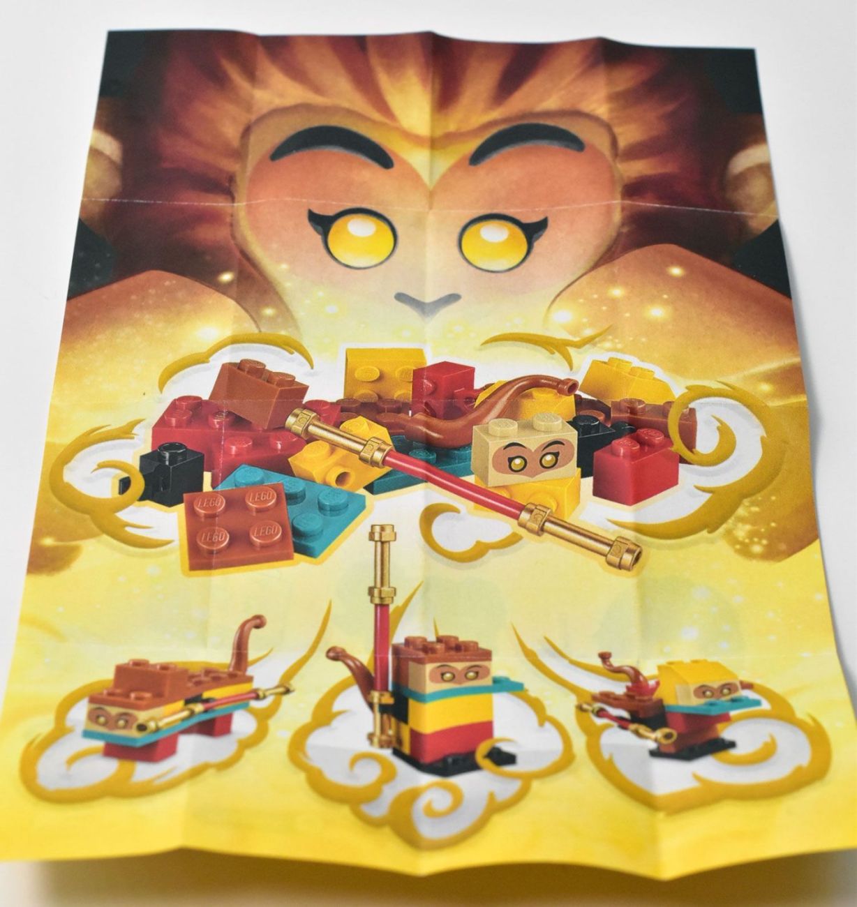 In dem Polybag liegt auch gefaltetes Info-Blatt im DIN-A5-Format mit ersten Bauideen. Eine Bauanleitung gibt es nicht. Die ist hier aber auch nicht nötig. Wie man sieht, selbst ich habe es geschafft, den Monkey King in den verschiedenen „Erscheinungen“ nachzubauen.