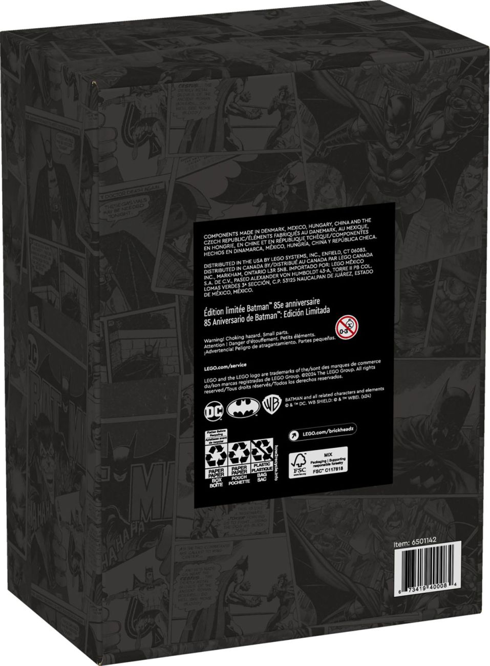 In der Box sollen laut Beschreibung im Prämien-Shop auch acht Filmposter und ein besonderer Comic zum 85. Geburtstag sein. Zudem lassen sich aus den Teilen acht verschiedene Batman BrickHeadz Varianten zusammenbauen – leider immer nur eine Figur gleichzeitig.