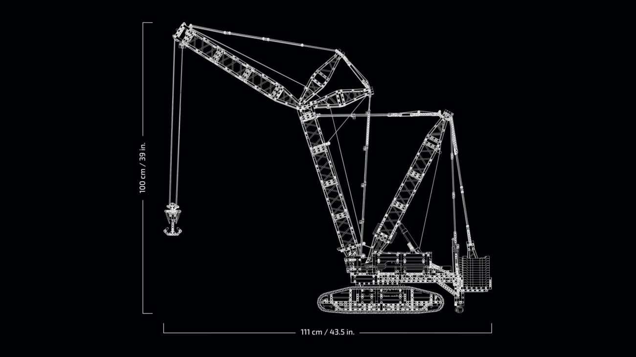 Dem hohen Preis des LEGO 42146 Liebherr LR 13000 Raupenkran stehen stehen gerade einmal 2883 Teile gegenüber, aus denen sich das 100 cm hohe, 110 cm lange und 28 cm breite Ungetüm bauen lässt, wodurch sich ein Verhältnis von knapp 23,6 Cent je Teil ergibt. Nicht ganz klar ist aktuell, ob der Kran nun 99 cm oder 100 cm hoch ist, denn LEGO gibt in der Produktbeschreibung beide Werte an. So oder so stellt der Liebherr Kran damit keinen neuen Rekord auf, denn auch der LEGO 42082 Geländegängiger Kranwagen von 2018 war schon einen Meter hoch,