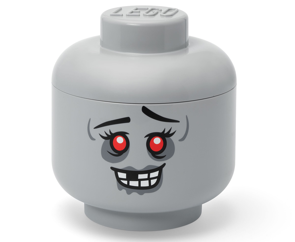 Anbei ein Auszug aus der Produktbeschreibung: Je weniger Unordnung, desto mehr Bauspaß! Der LEGO Zombiekopf ist eine Aufbewahrungsbox, in die Kinder nach dem Spielen gern ihre Steine aufräumen werden. Zudem lassen dich die Köpfe wunderbar stapeln. Ich nutze den Halloween-Kopf nur als reines Deko-Objekt. Mit einer LED Lampe im Inneren lockt der Kopf jedes Jahr die Kinder aus der Nachbarschaft an meine Haustüre. Neben ein paar Süßigkeiten gibt es dann auch das eine oder andere LEGO Polybag.