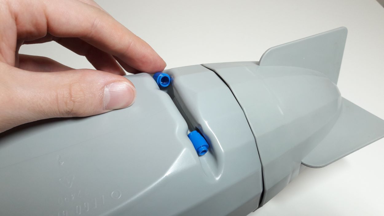 Um genau zu sein, besteht der Ballon eigentlich aus zwei Teilen. Das hintere Ende lässt sich nämlich abschrauben, wodurch man den Zeppelin als Aufbewahrungsbox verwenden kann – oder vielleicht sogar als Trinkflasche. Seinen Orangensaft daraus zu schlürfen hätte jedes Kind zum coolsten auf dem ganzen Schulhof werden lassen. Auch weitere unsachgerechte Verwendungen wären durchaus denkbar – wie würde sich das Ding eigentlich als Football machen?