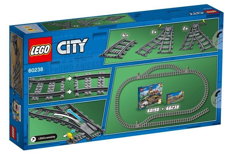 Nachdem der dänische Spielwarenhersteller gestern Nachmittag die ersten Bilder zu den beiden neuen LEGO Eisenbahnen – Personenzug (60197) und Güterzug (60198) – vorgestellt hat, können wir euch heute die Set-Bilder zu einer ersten LEGO City Eisenbahn Erweiterung (60238) vorstellen: Darin sind neben zwei Weichen auch vier Kurven enthalten.