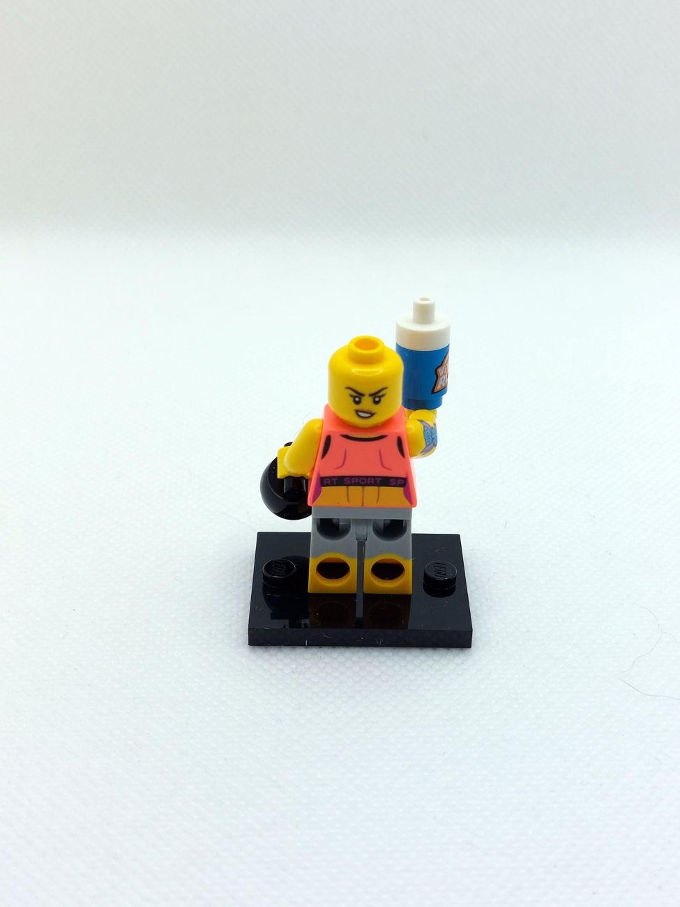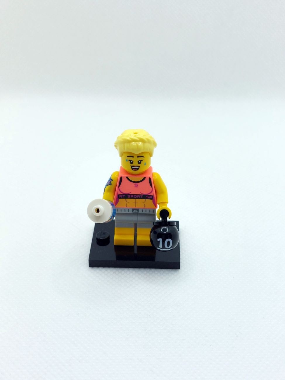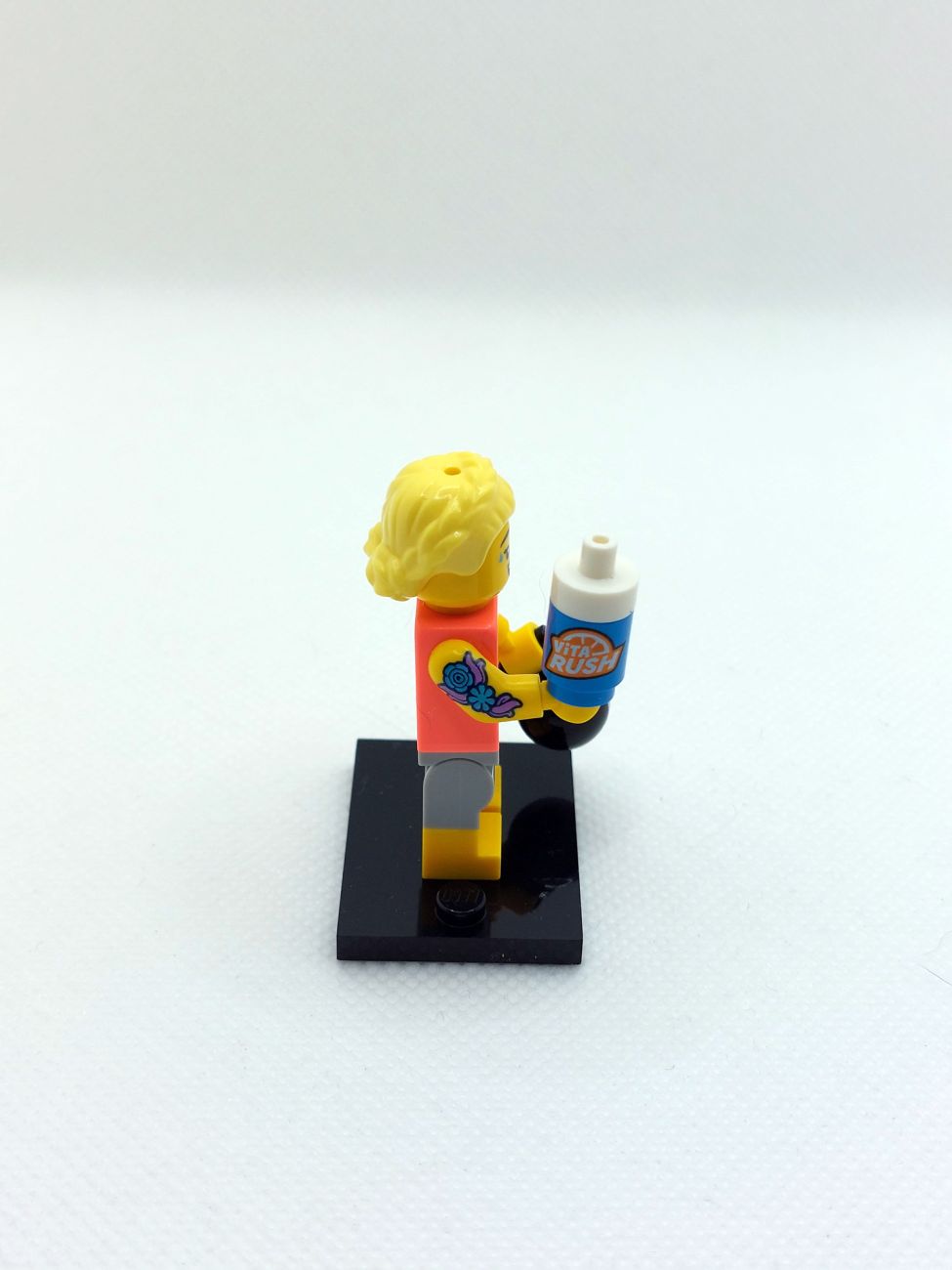 Die Fitnesstrainerin ist offensichtlich äußerst durchtrainiert, sie kommt mit einem neuen Armprint in Form eines Tattoos (immer nützlich für MOCs), einer Kettlebell und wie bei der E-Sports Gamerin erwähnt war die Werbung für „Vita Rush“ offensichtlich erfolgreich, denn die Trainerin kommt mit einer entsprechenden Flasche.