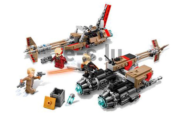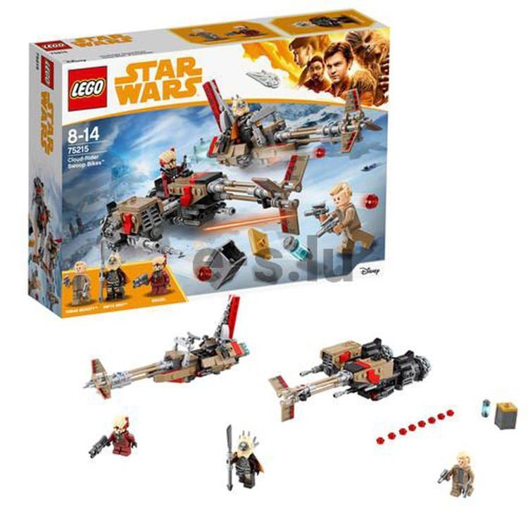 Ein Online-Shop aus Luxemburg hat bereits zwei der neuen LEGO Star Wars Solo Sets auf seiner Webseite gelistet: Anakins Jedi Starfighter (75214) und Cloud-Rider Swoop Bikes (75215). Zu letzterem Set gab es bislang kein Bildmaterial, umso erfreulicher ist es, hier fündig zu werden – trotz der geringen Auflösung und eigenem Wasserzeichen in den Bildern.
