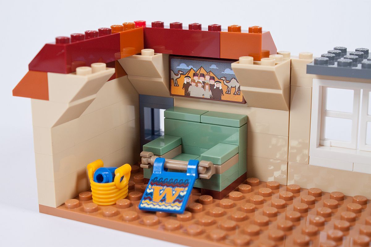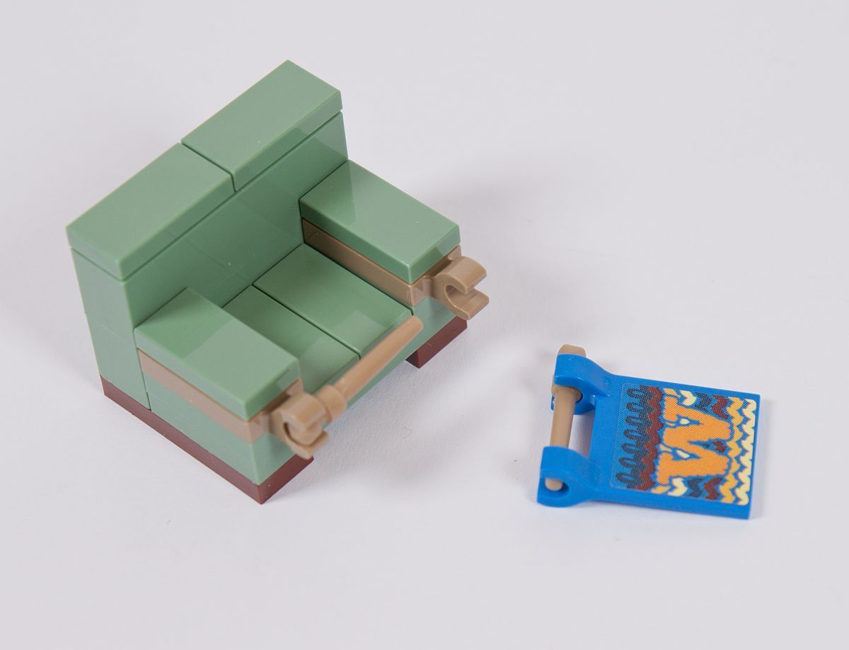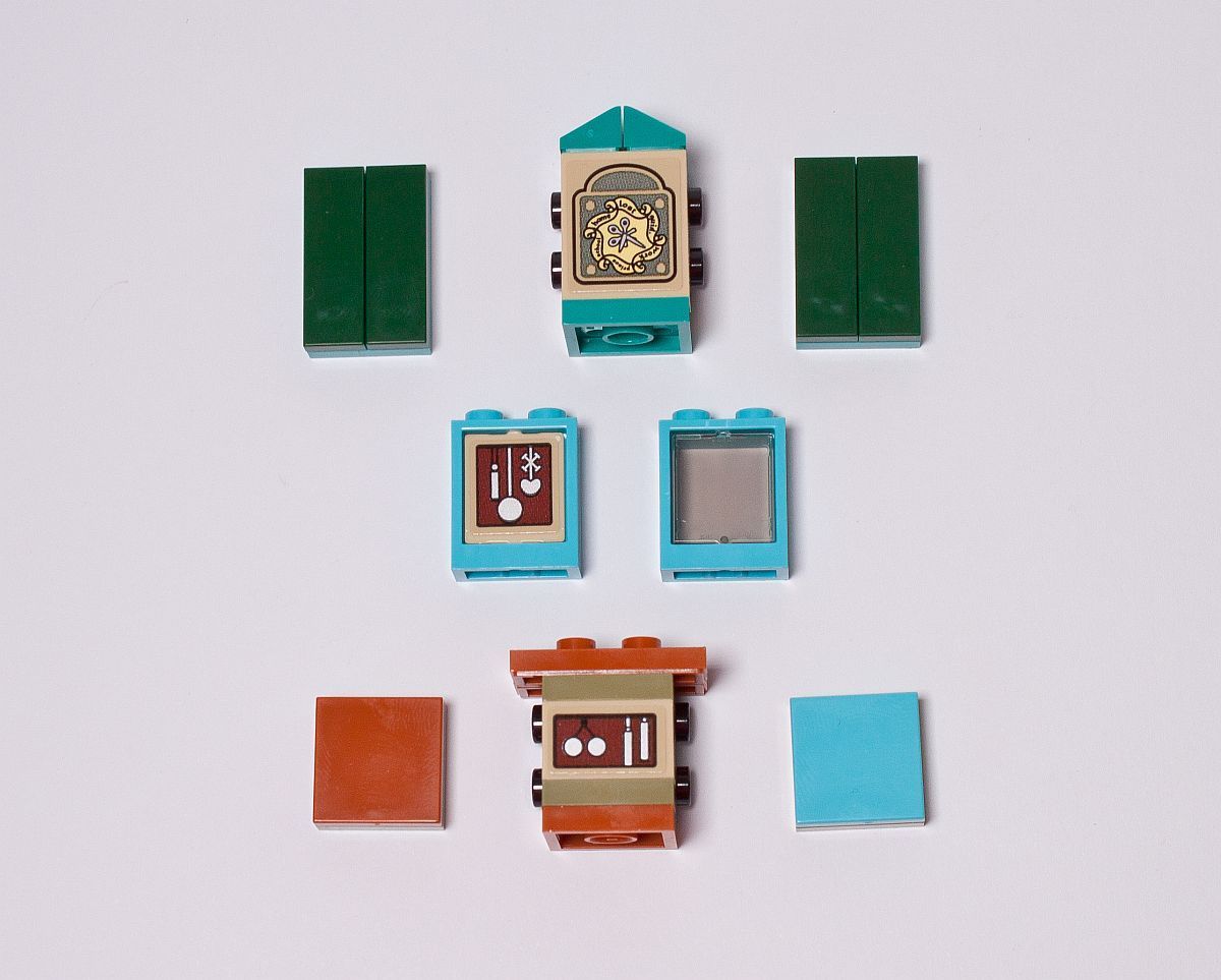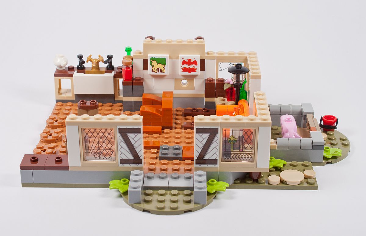 Die Verzierungen auf den Wänden und den Fenstern sind, wie oben bereits gesehen, leider alles Sticker. So ein bedruckter Fachwerkstein, oder Buntglasfenster, wären sicherlich tolle und brauchbare Elemente für den ein oder anderen MOC’er gewesen.