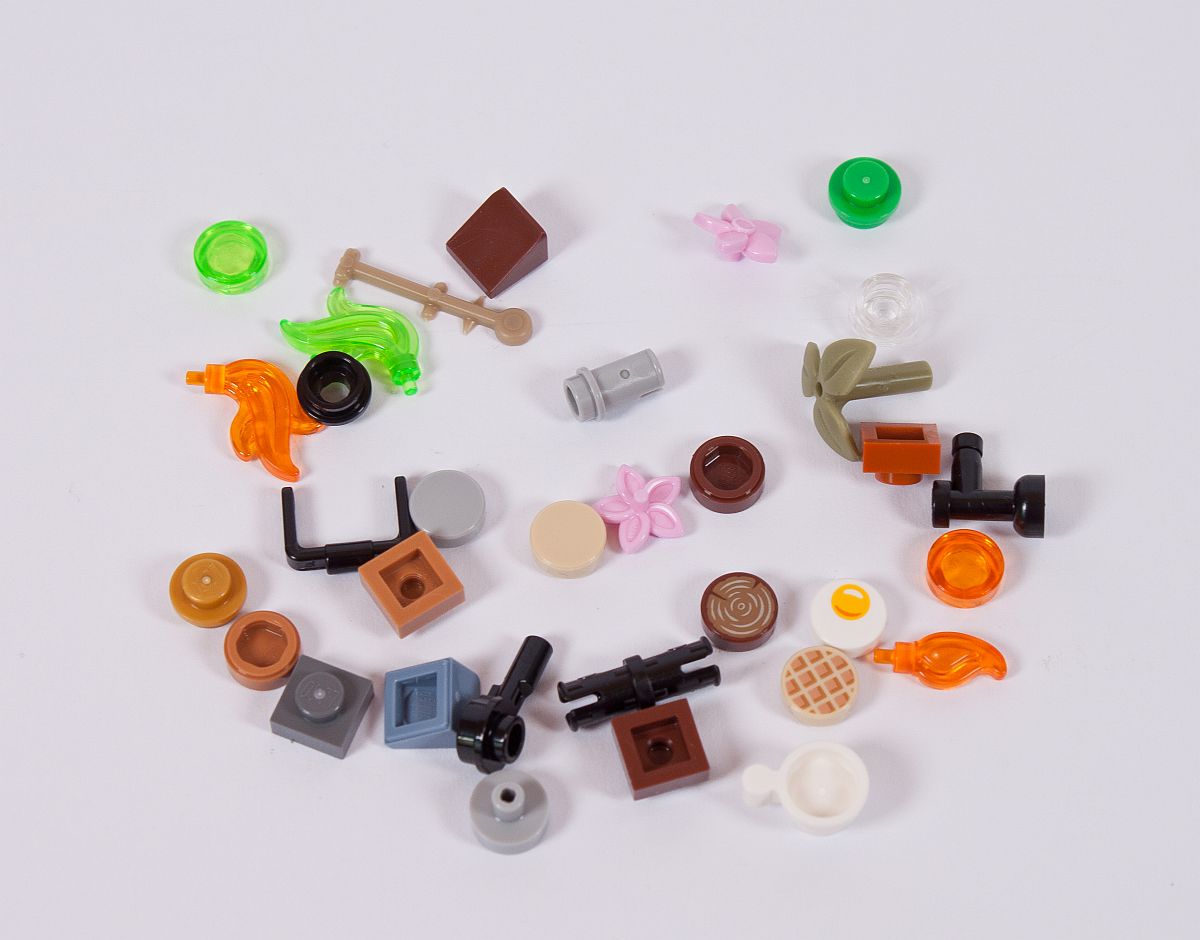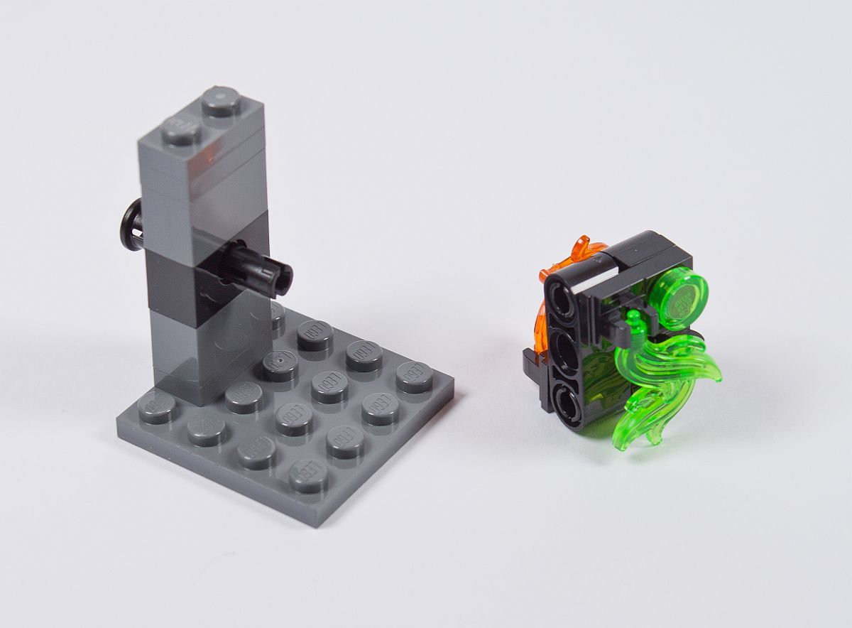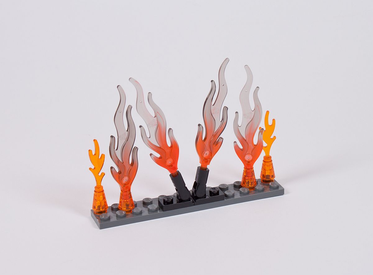 Am Ende bleiben, wie üblich, noch ein paar der Kleinteile übrig – auch einige der bedruckten Elemente, sowie die neon-farbenden Flammen.