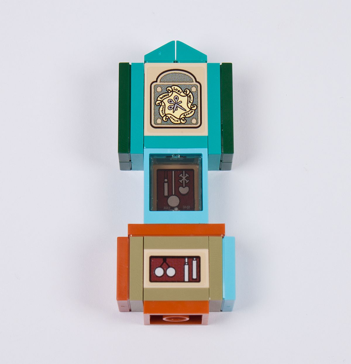Ein wichtiges Detail fehlt nun aber noch – die Standuhr. Diese Uhr ist keine gewöhnliche Standuhr, sondern hat neun Zeiger, für jedes Familienmitglied einen. Jeder von ihnen zeigt an, wo sich derjenige gerade befindet – sei es z.B. in der Schule, zu Hause, in Gefahr oder im Gefängnis. Das bunte Design ist perfekt umgesetzt – so sah die Uhr vor dem Brand des Fuchsbaus aus. Danach wurde sie durch eine braune Version ersetzt.