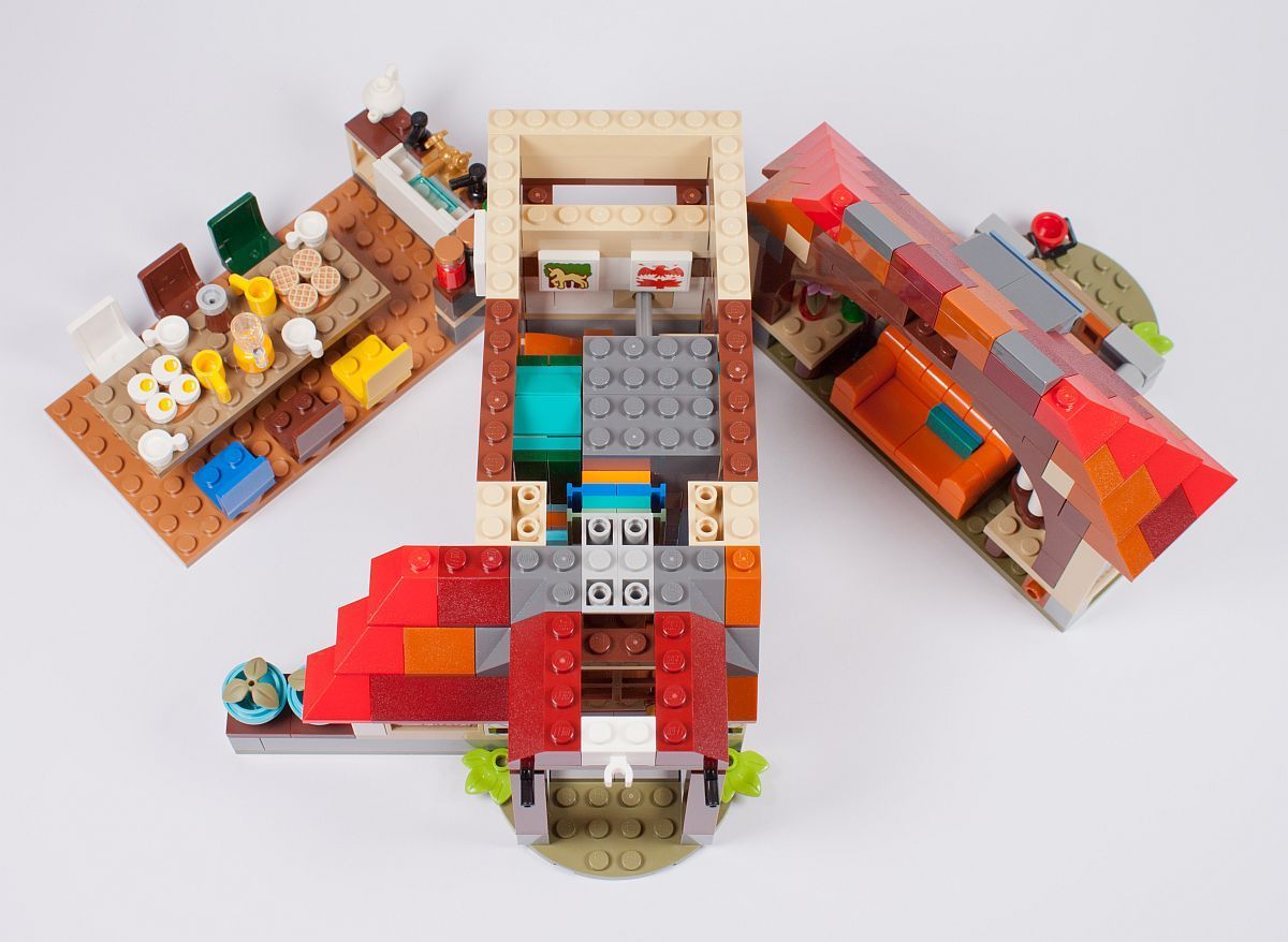 Ein sehr schönes und vor allem unglaublich detailliertes Set. Das geht fast in Richtung Modular Buildings. Besonders gefällt mir der massive Einsatz von verschiedenfarbigen Dachsteinen, hier hätte LEGO noch vor wenigen Jahren einfach drei Platten mit Scharnieren zusammengeklatscht und fertig.