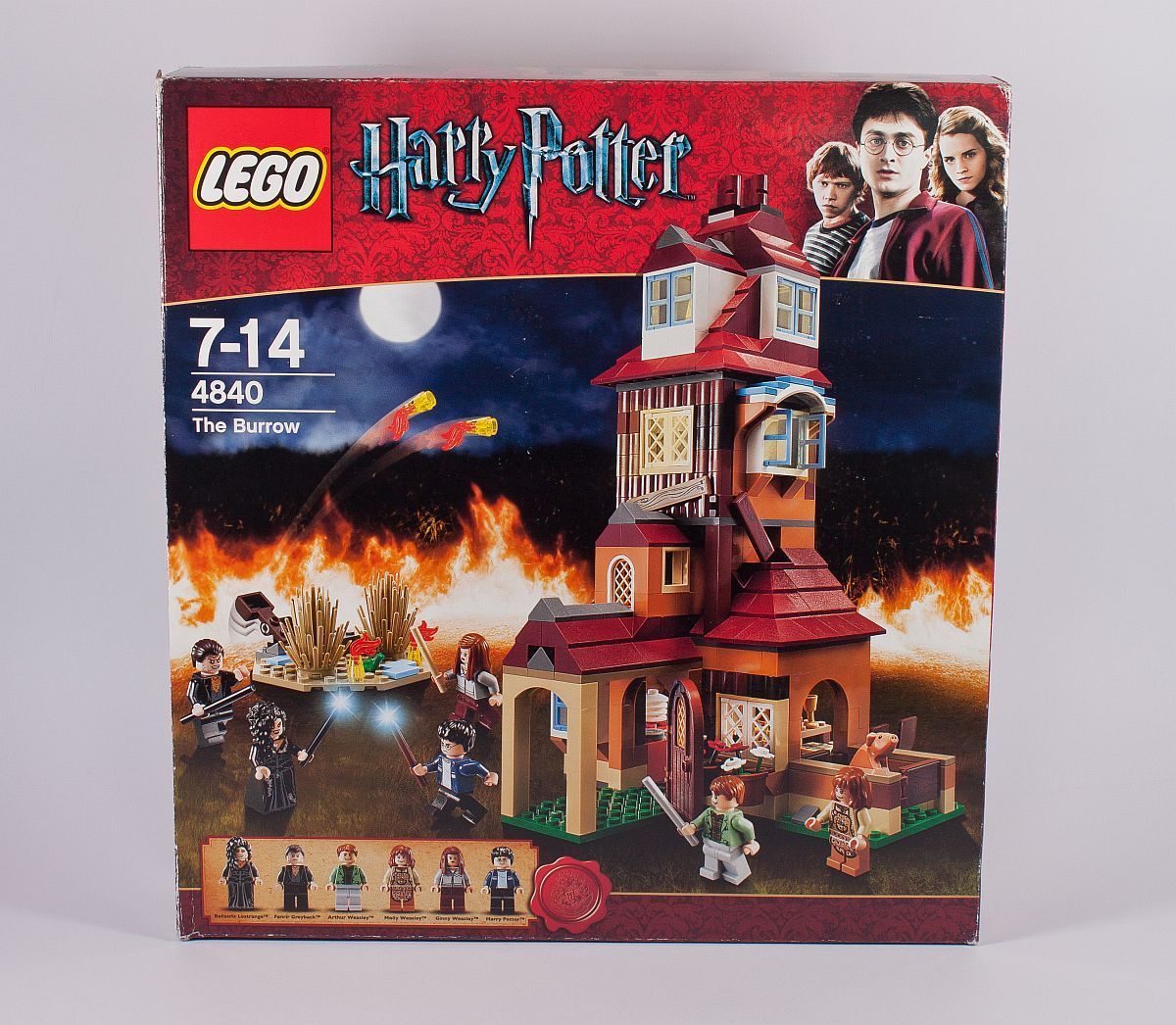 Wie auch schon bei meinem Review zum LEGO Harry Potter Ligusterweg 4 (75968) Set, bietet sich auch beim Fuchsbau ein kleiner Vergleich mit dem Vorgänger aus dem Jahr 2010 an. Die Verpackung hat, wie schon anfangs beschrieben, die identischen Maße zum aktuellen Set, ist nur etwas schmaler. Auch hier wurde mit Flammen in Photoshop nicht gespart. Die (nur) sechs enthaltenen Minifiguren sind auch hier auf der Unterseite bereits abgebildet – mit dazugehörigen Namen.