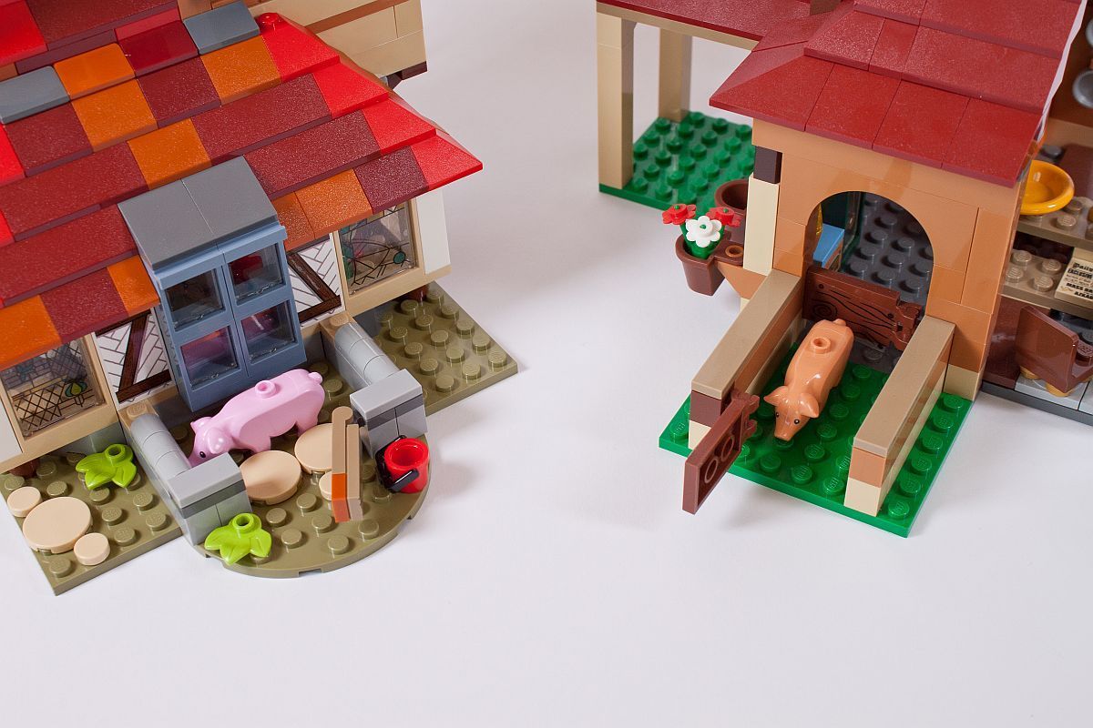 Im Grunddesign ähneln sich die Bauten. Es gibt verschiedene Zimmer der Kinder, die Küche, ein Essbereich und auch den Schweinestall.
