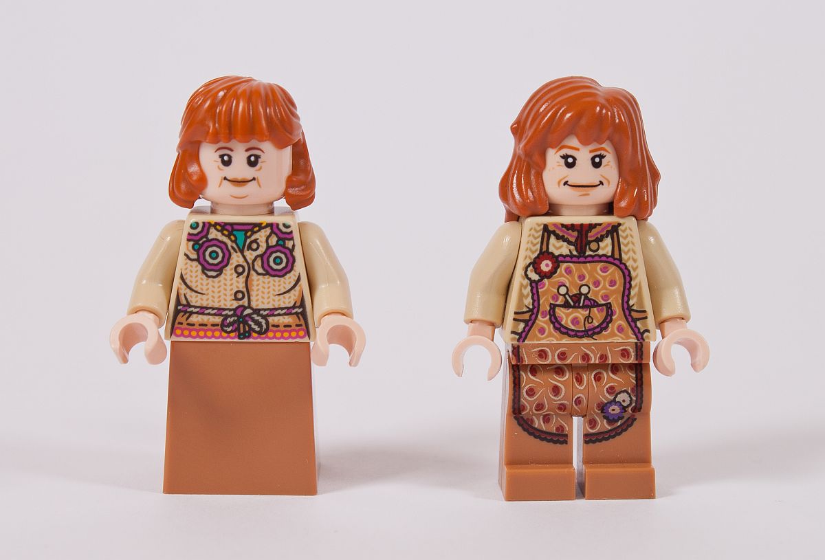 Das Highlight ist und bleibt für mich die alte Molly Weasley. Der Druck auf dem Torso mit dem Übergang der Schürze auf das Beinelement ist grandios. Warum der Rock nicht bedruckt ist, bleibt mir wirklich ein Rätsel. Der alte Kopf mit den etwas längeren Haaren lässt sie zwar jünger wirken, als die neue Figur, gefällt mir persönlich aber auch besser.