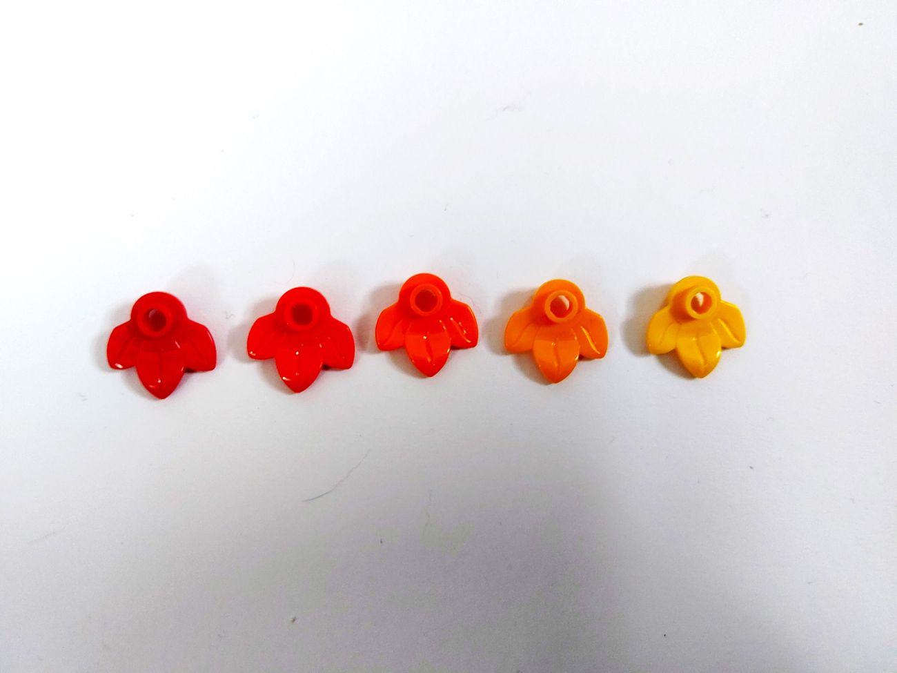 Insgesamt gibt es 14 verschiedene, die wieder zufällig enthalten sind, wie zuletzt bei den Schokofroschfliesen. In der März-Welle gibt es davon nur noch eines in der Eulerei und eines im Bootshaus. Hier wird man sich mit dem Sammeln also einfacher tun, wenn man auf die Sommerwelle wartet. Außerdem gibt es einen neuen Print für Hagrids Ofenhandschuh und das gerne genutzte kleine Blatt in dem neuen Orangeton. Hier kann man es auch gut mit den bestehenden Farbtönen vergleichen, da es die Blätter in allen Tönen gibt. Von links nach rechts: rot, das neue reddish orange, orange, flame yellowish orange und gelb.