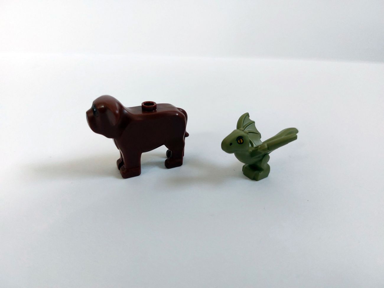 Figuren: HP leidet darunter, dass gefühlt in jedem Set mindestens 2 der „Drei“ vorkommen – hier sogar alle drei. Auch hagrid und Draco sind ja nicht selten. Für uns „alte“ Hasen also ist die Figurenauswahl auch kein Kaufgrund. Was bleibt sind 2 durchaus interessante „Nebenfiguren“ Fang und „Norbert(a)“. Hier hoffe ich aber, dass zumindest Fang uns auch in anderen Sets – durchaus auch abseits von HP begegnet – dem Hundemold nicht weiterzuverwenden wäre fast so, als ob man Jahrelang auf eine Ziege warten müsste ;). Das Drachenjunge ist auch Nett, sollte sich aber eventuell in „Fantasyreihen“ wiederverwerten lassen.