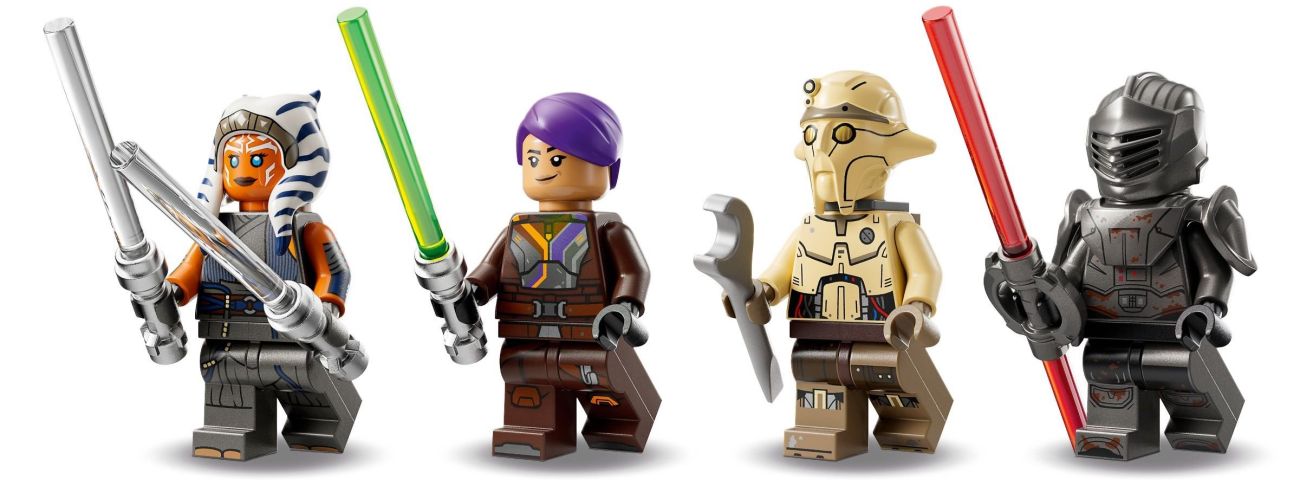 Als Minifiguren liegen dem Set Morgan Elsbeth, die beiden Ex-Jedi Baylan Skoll und Shin Hati mit roten Lichtschwertern und der Pilot der Neuen Republik Captain Porter samt Astromechdroiden bei. Für die insgesamt 1056 Teile werden 104,99 Euro fällig.
