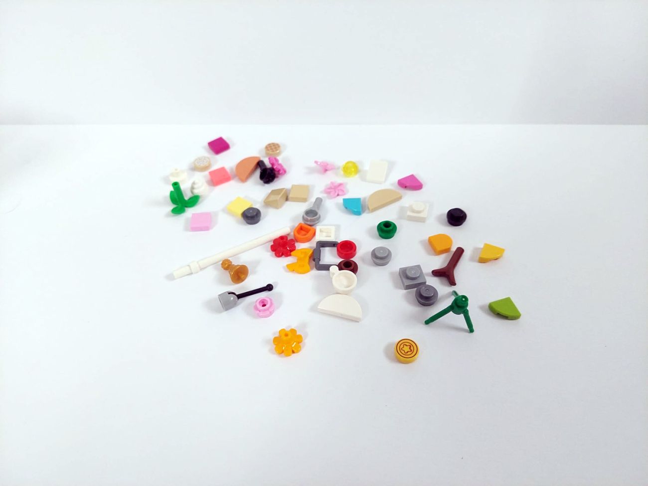 Mit dem Inhalt der ersten vier Tüten baut man Sophies Haus. Drei davon sind für das Haus selbst, in der vierten baut man die Einrichtung, die man beliebig platzieren kann. In den vier Tüten sind auch die Verbindungsstücke und ein Fahrrad dabei. In Tüte fünf bis sieben baut man dann Nooks Laden. Bereits während dem Bau wird man darauf hingewiesen, dass man die Gebäude beliebig verbinden, einrichten und sogar ändern kann, für Sophies Haus sind zwei verschiedene Fenster dabei. Auffällig sind die vielen Ersatzteile und jede Menge neuer Prints. Bei der gesamten Themenwelt gibt es übrigens keine Sticker, was ich wirklich gut finde.
