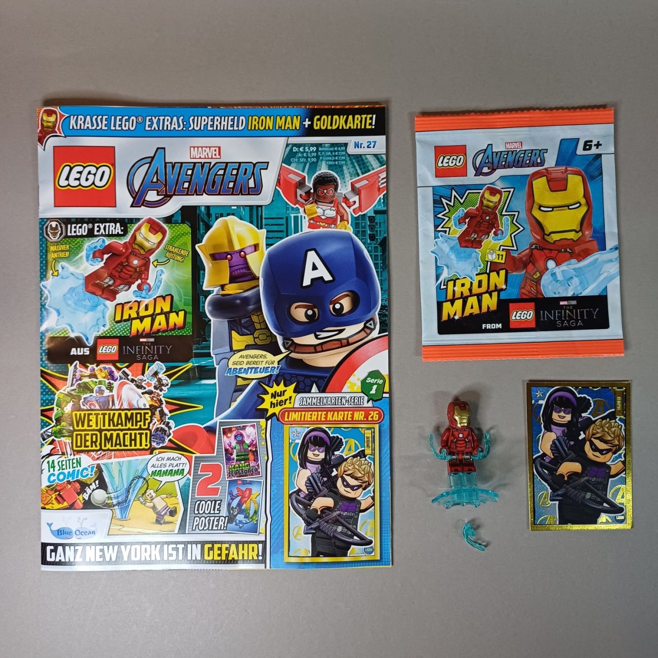 Das neue LEGO Avengers Magazin #27 kommt mit einer Minifigur des bekanntesten Charakters des Marvel Universums: Iron Man. Das Magazin mit elf LEGO Teilen von Blue Ocean ist wieder für 5,99 Euro erhältlich und kommt wie immer mit einer Goldkarte, dieses Mal mit LE 26 Hawkeye und Kate Bishop in der Comic-Variante.