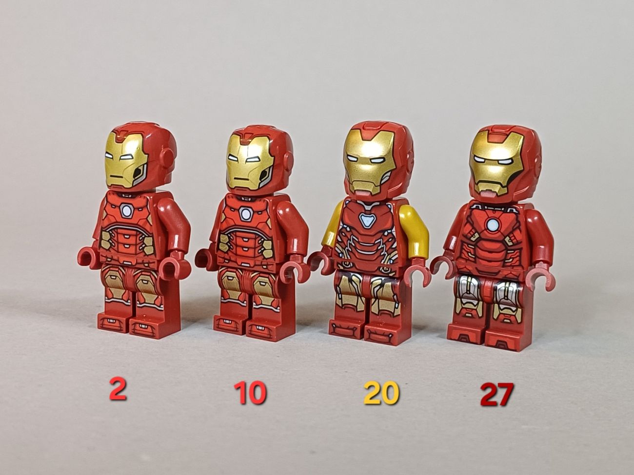 LEGO at mittlerweile fast alle MCU-Rüstungen rausgebracht, wenn man mal von den ganzen obskuren Rüstungen aus Iron Man 3 absieht; aber auch von Iron man 3 gibt es mittlerweile 3 oder 4 Rüstungen.
