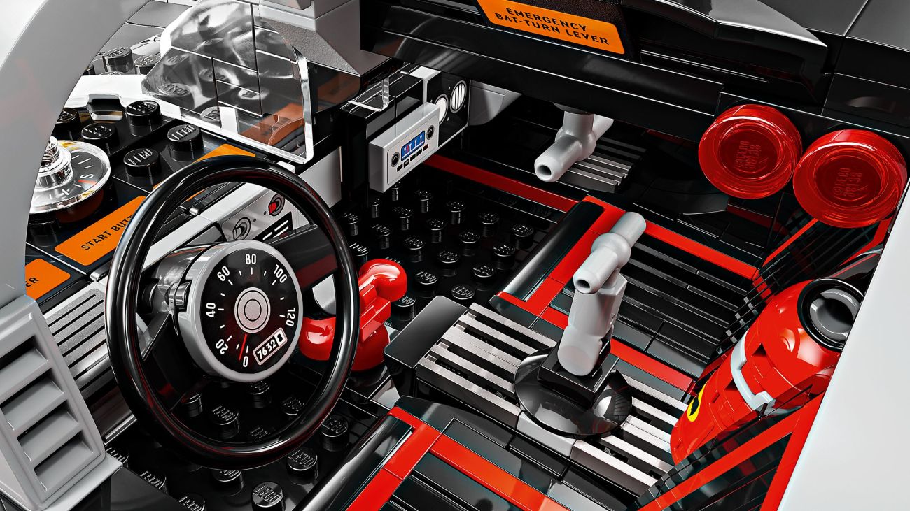 Unser Batmobil misst in der Länge satte 50 Zentimeter und ist mit zahlreichen kleinen Details und Easter Eggs aus der beliebten Serie der 60er Jahre versehen. Im Innenraum des Fahrzeugs finden wir unter anderem das bekannte rote Bat-Phone und das große Lenkrad, direkt dahinter fallen die drei Raketenwerfer auf wobei hier im Original allerlei Flugkörper abgeschossen werden konnten. Im Kofferraum befindet sich noch der mobile Crime Computer.