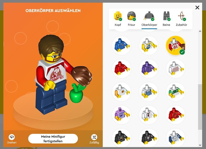 In dem Editor könnt ihr aus mehreren Möglichkeiten wählen und alle Teile eurer Minifig nach euren Vorstellungen auswählen. Dabei stehen euch aktuell folgende Teile zur Verfügung.