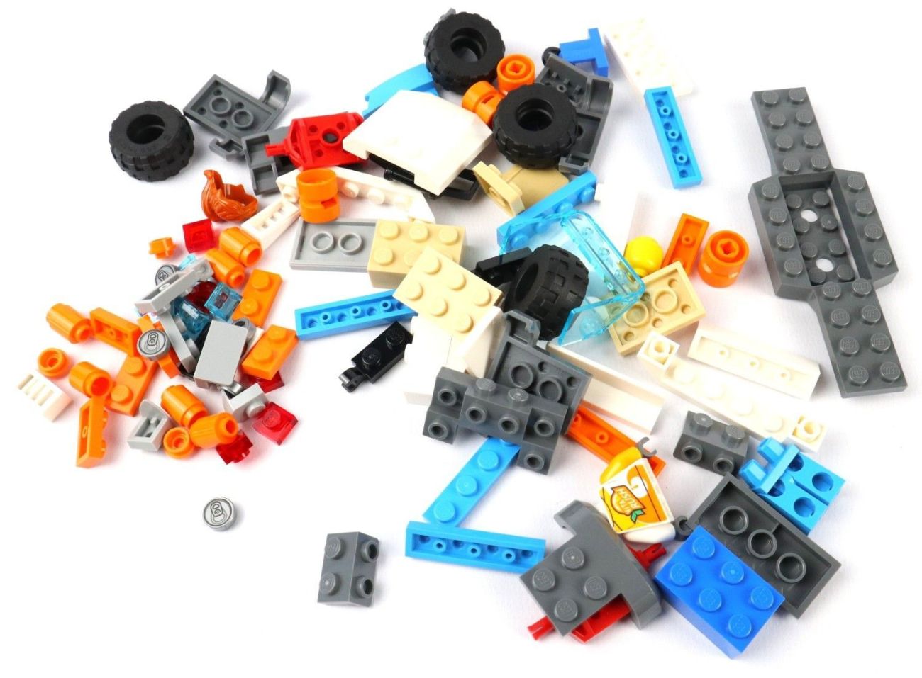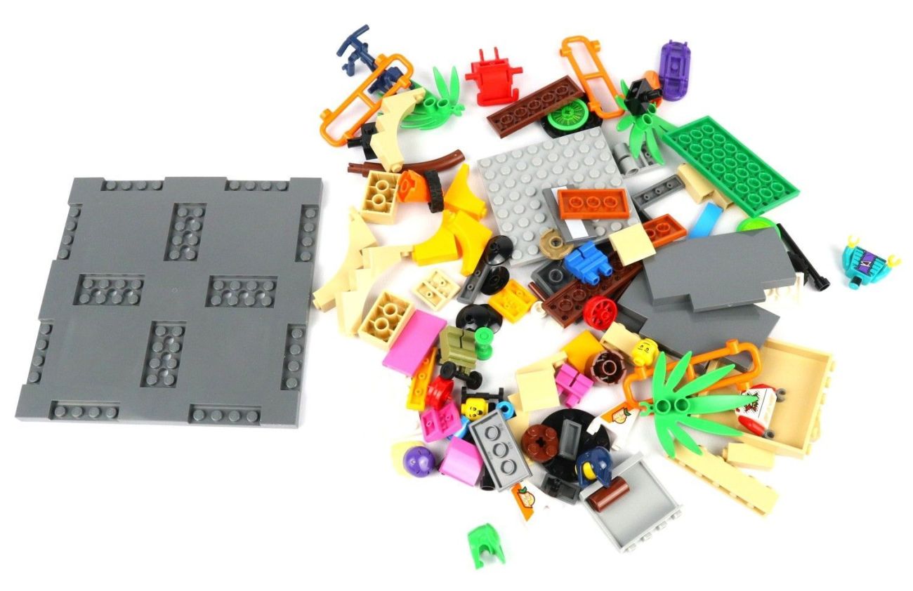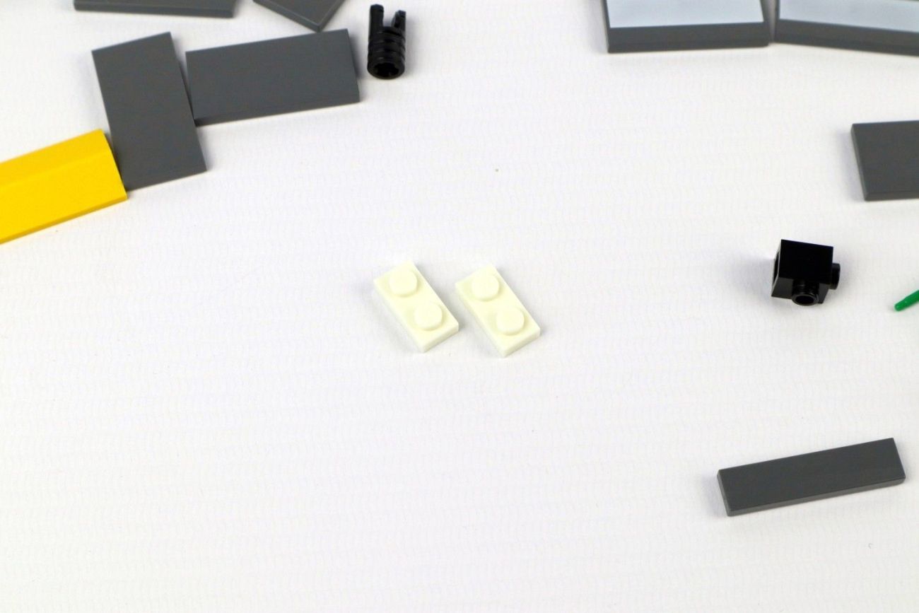 Die weiteren 107 LEGO Teile bestehen aus Fliesen, Platten, Rampen und weiteren Einzelteilen, die zu verschiedenem Zubehör zusammengesteckt werden.
