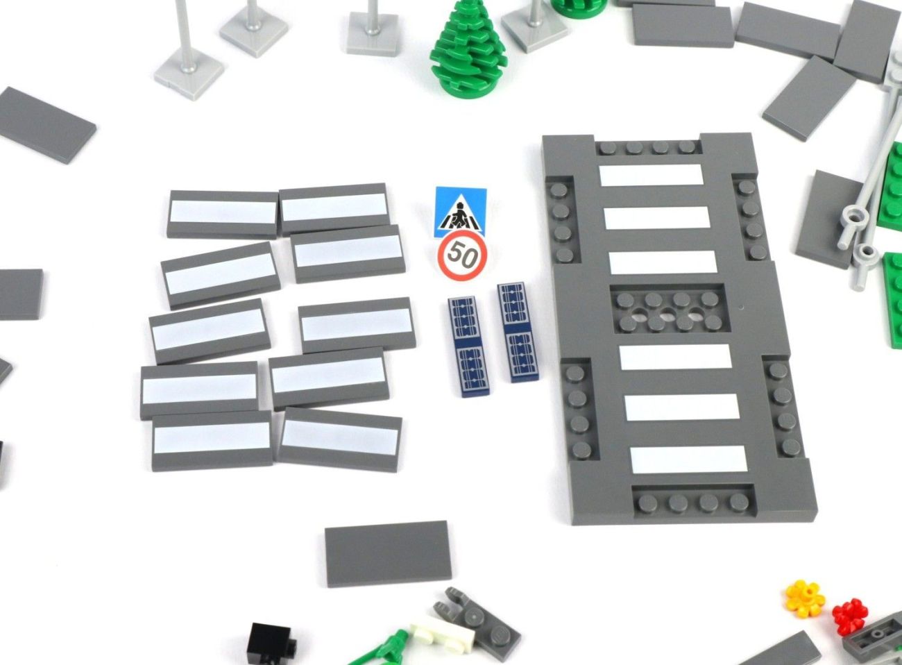 1. Glaube nicht, dass es darum geht das was im Set gefehlt hat. Es sind beim Straßenset die 2 Verkehrstafeln nur jeweils 1x dabei. Also fehlt noch ein Schild für den Fußgängerübergang auf der anderen Seite. Und noch einmal die Geschwindigkeitsbegrenzung ein 2. Mal, oder eine Aufhebung der Begrenzung als 2. Schild wäre fast cooler gewesen.